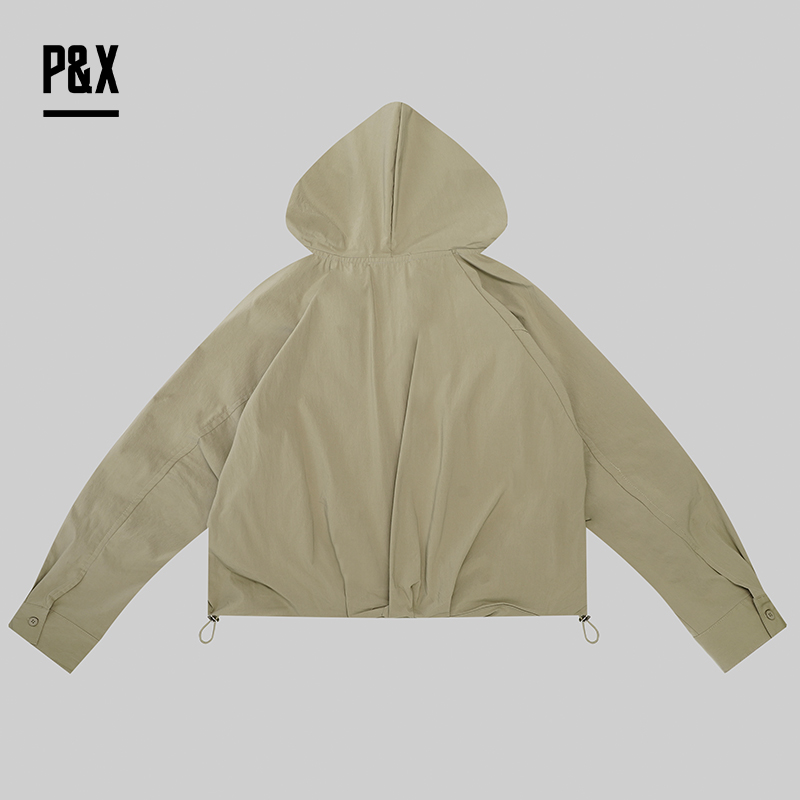 P&X设计师女装春季新款围脖设计梭织短款大衣825134039 杏色