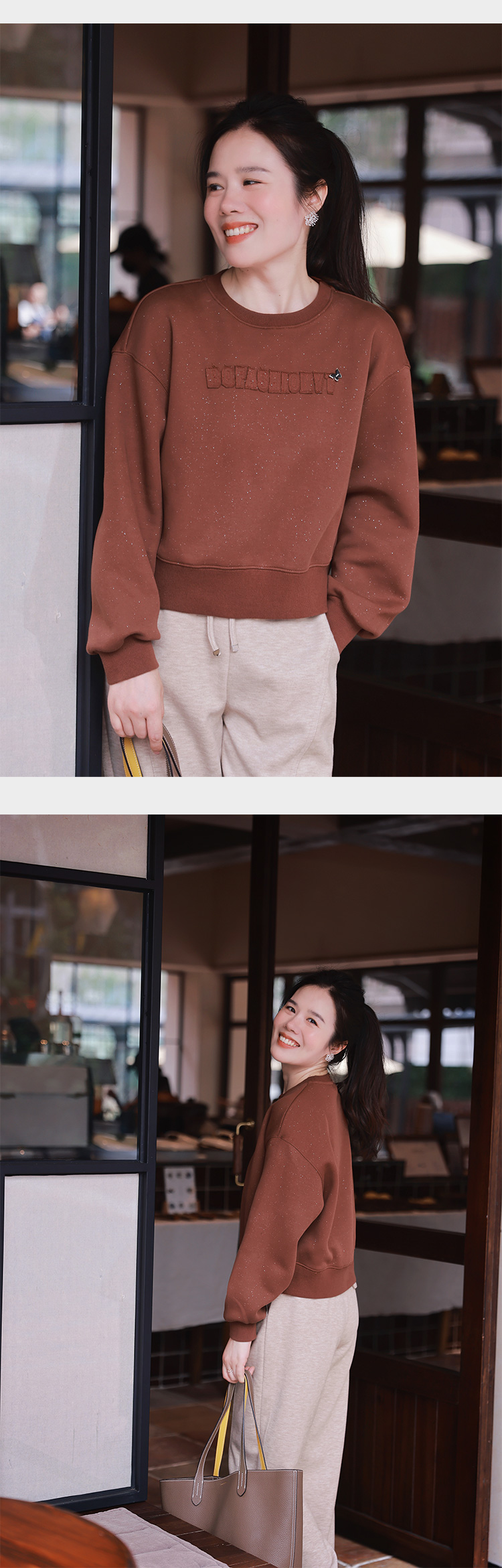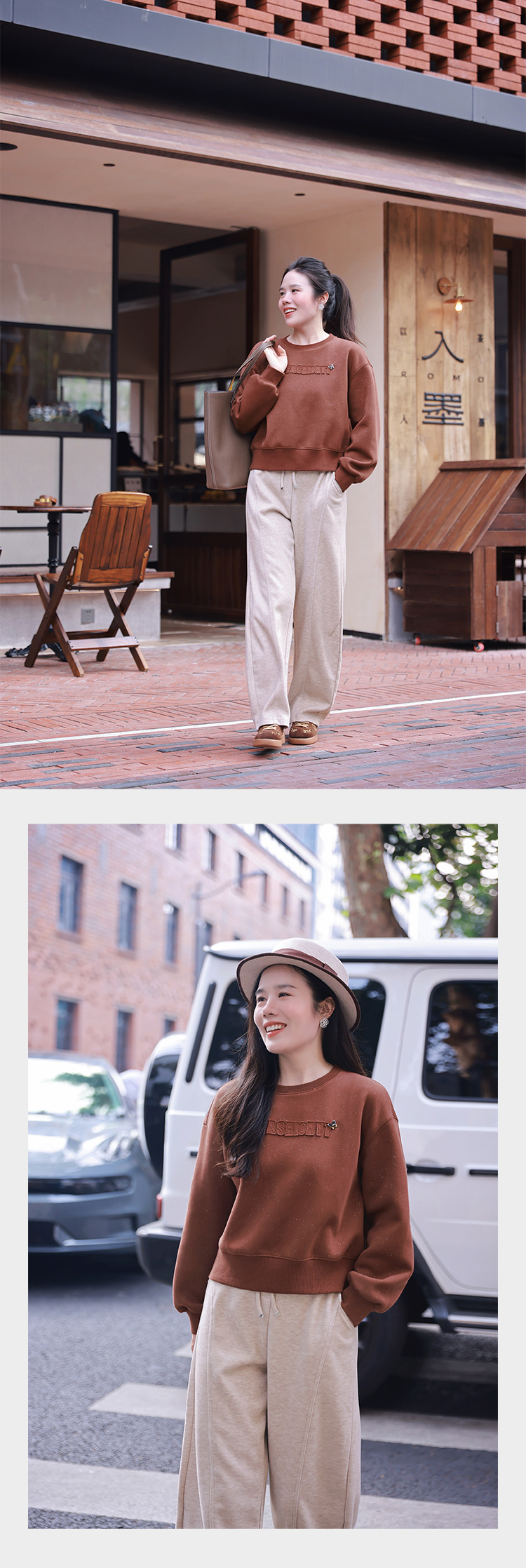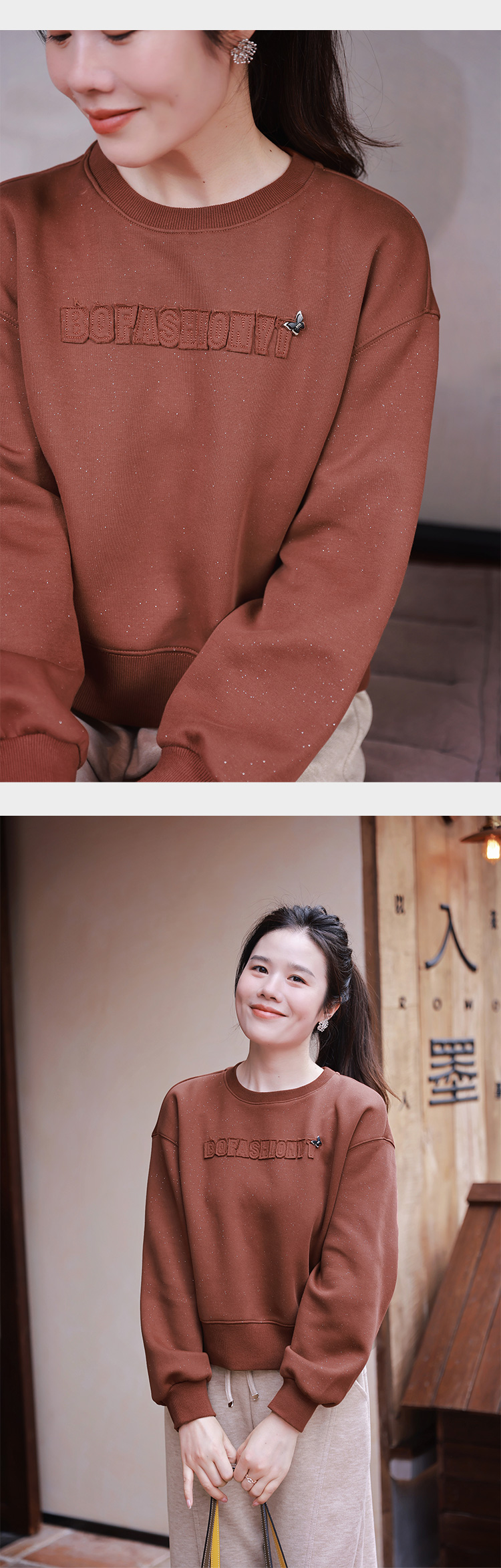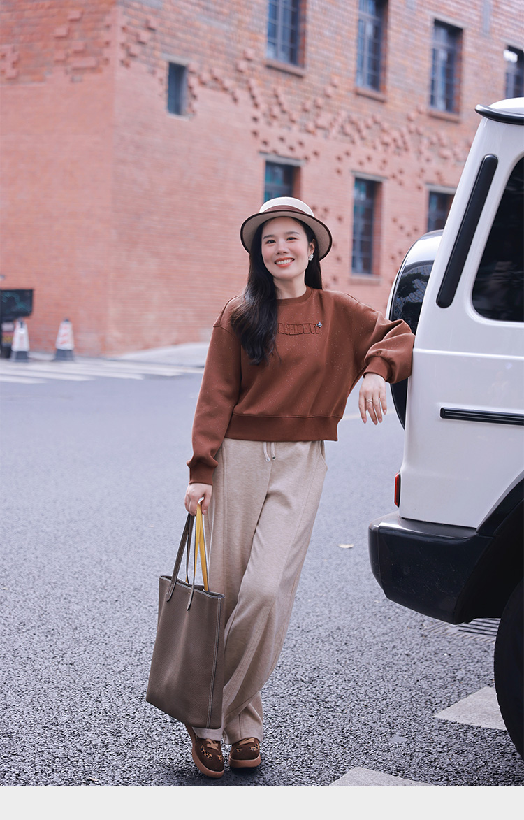 棉质圆领卫衣女秋冬季 设计感小众套头卫衣