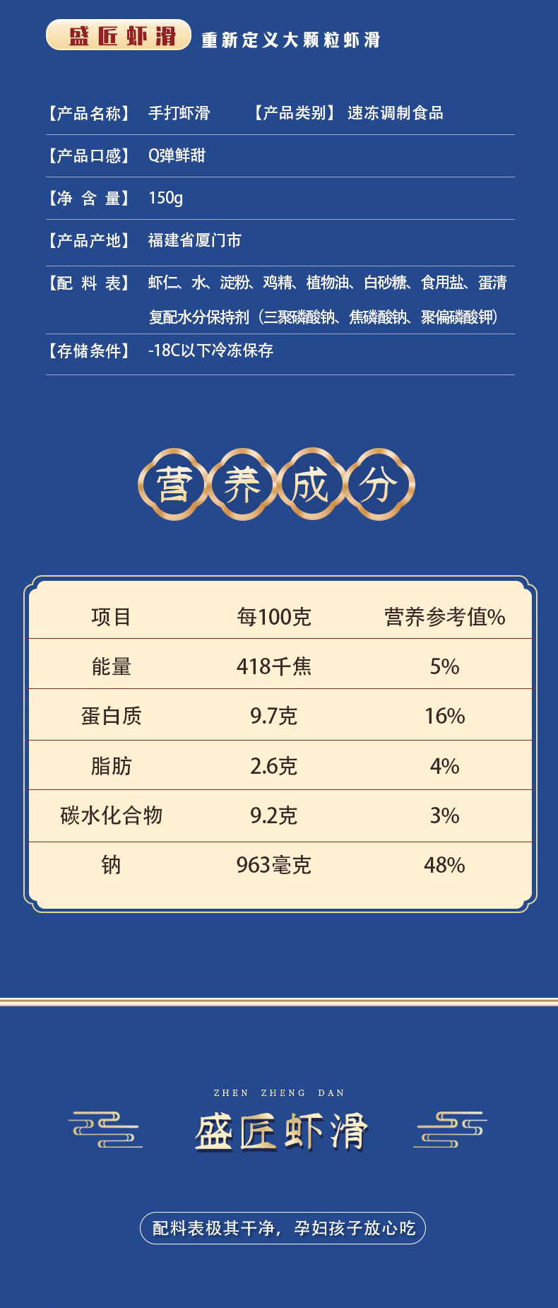 盛匠手打鲜虾滑*2包(150g/包 虾肉含量≥95%)生产日期: 2月