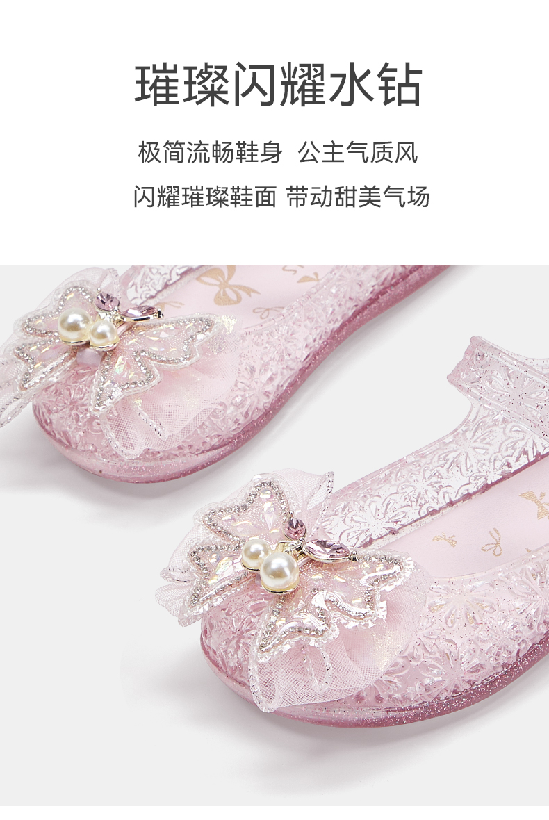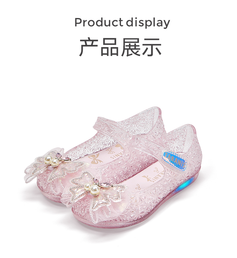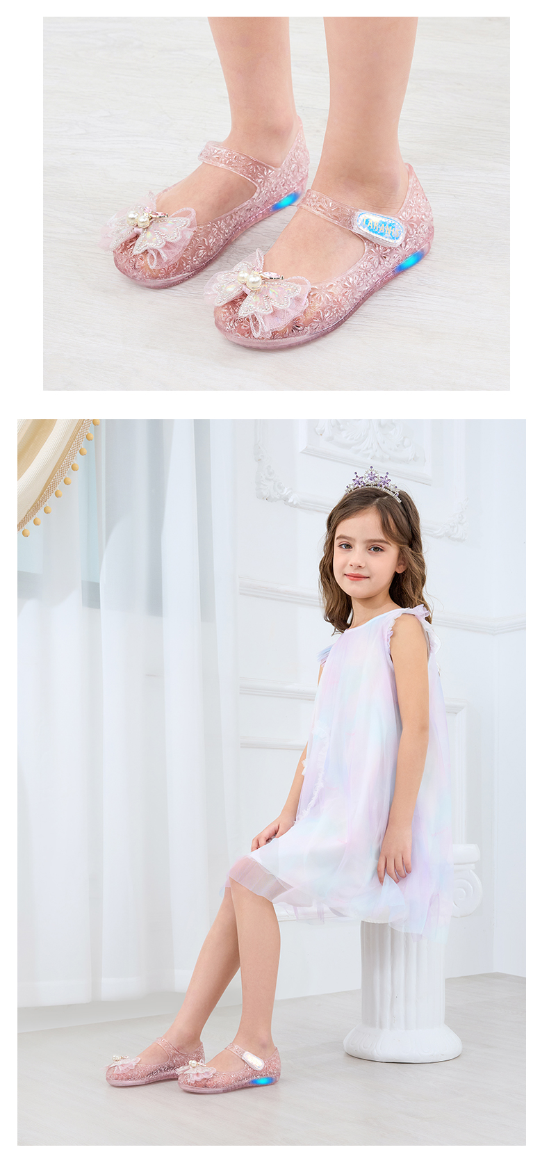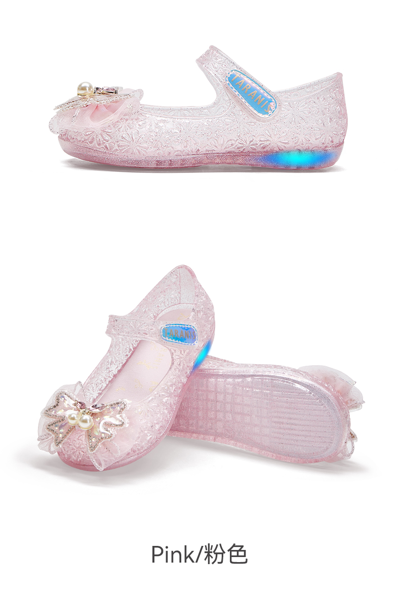 泰兰尼斯女童闪灯凉鞋25夏新款艾莎公主水晶鞋果冻鞋软底鞋子时尚 T12X5B6969