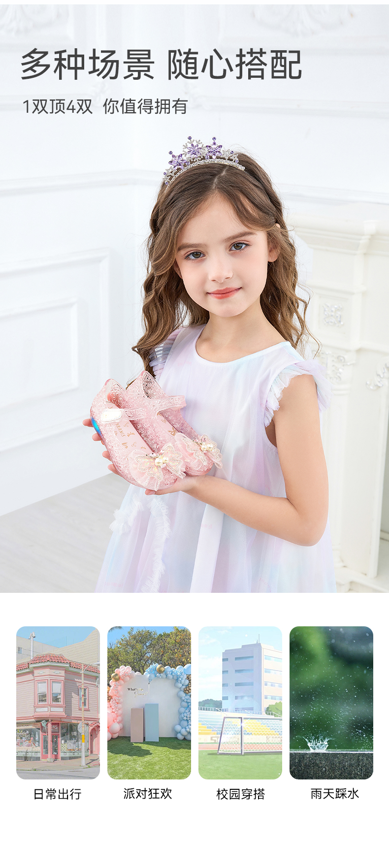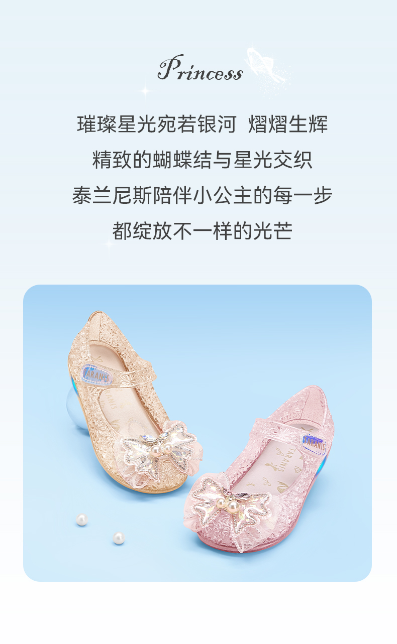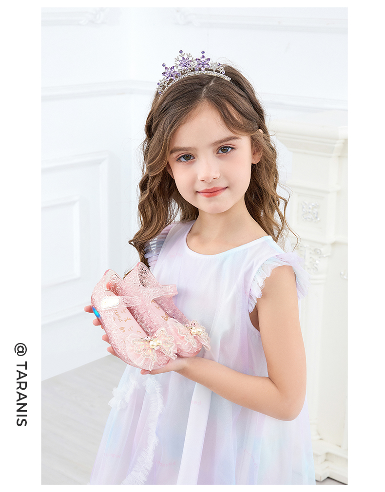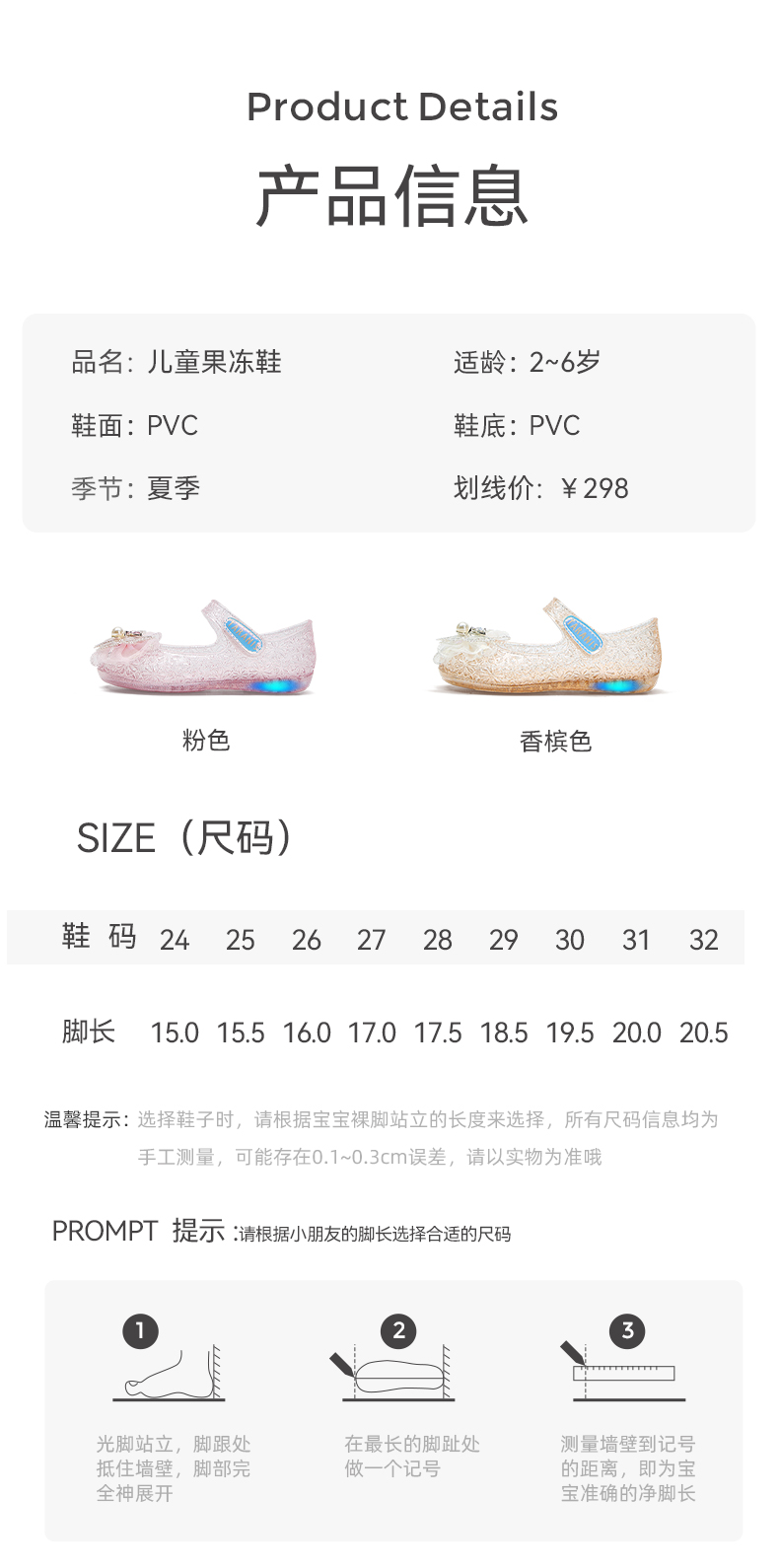 泰兰尼斯女童闪灯凉鞋25夏新款艾莎公主水晶鞋果冻鞋软底鞋子时尚 T12X5B6969