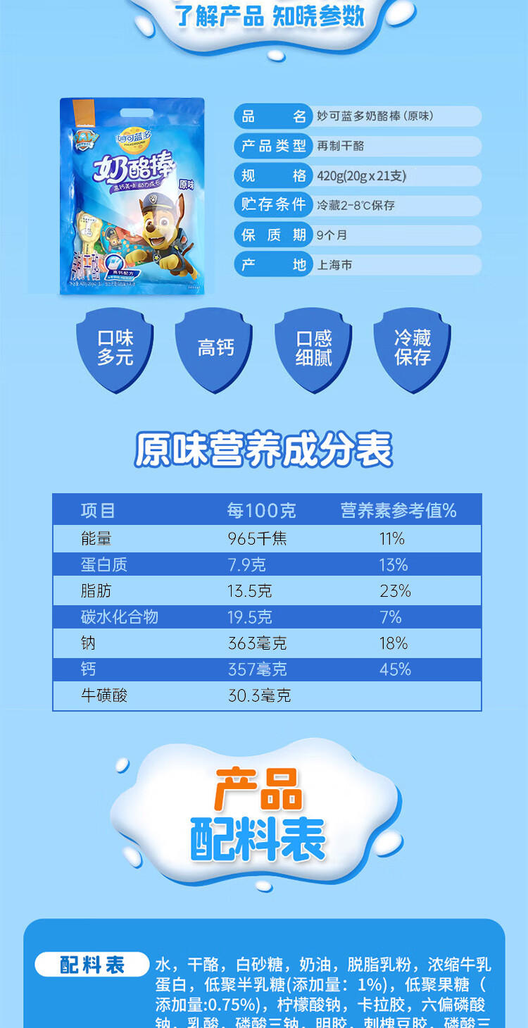 妙可蓝多 高钙配方奶酪棒 混合水果味 再制干酪 420g