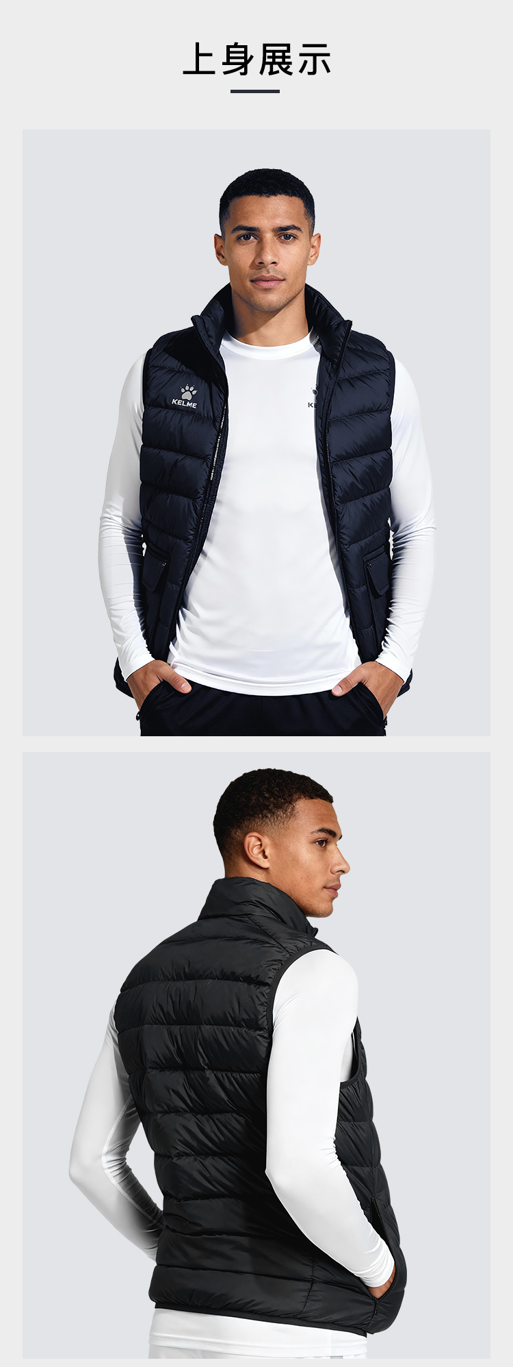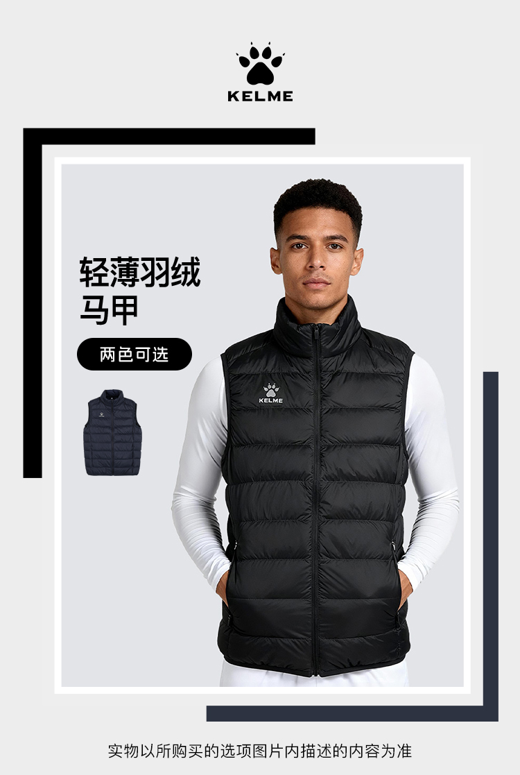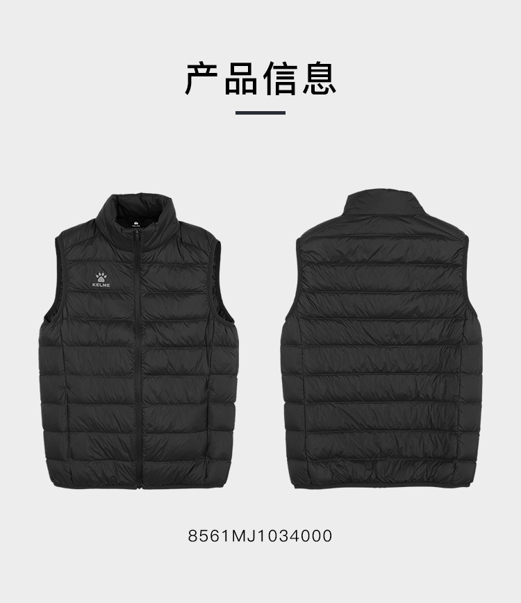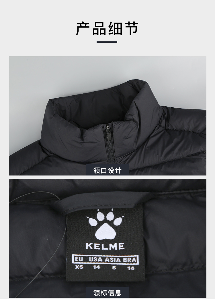 小李子KELME卡尔美足球运动训练轻薄羽绒马甲成人男8561MJ1034000