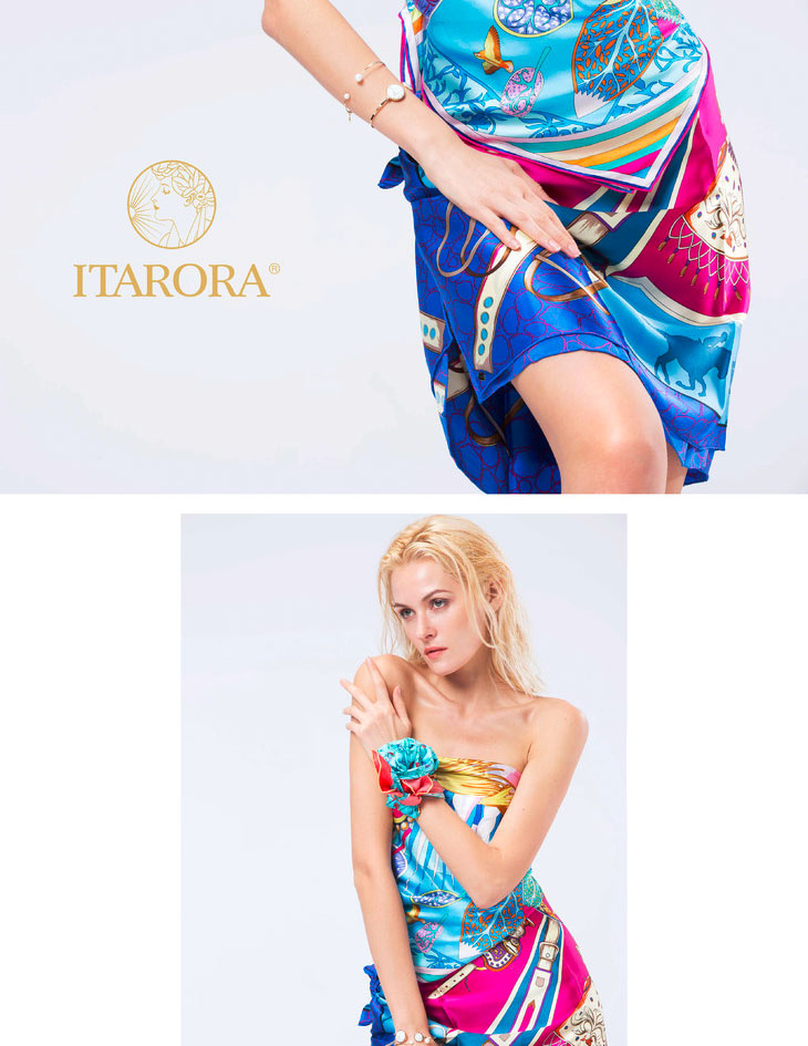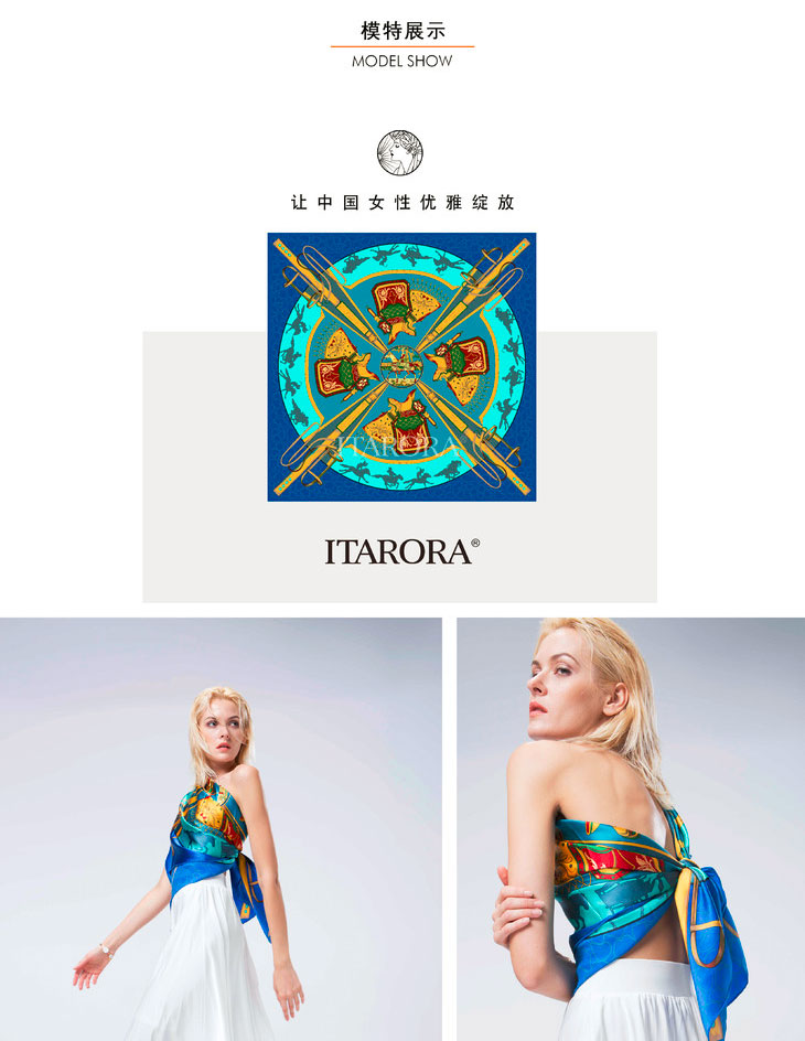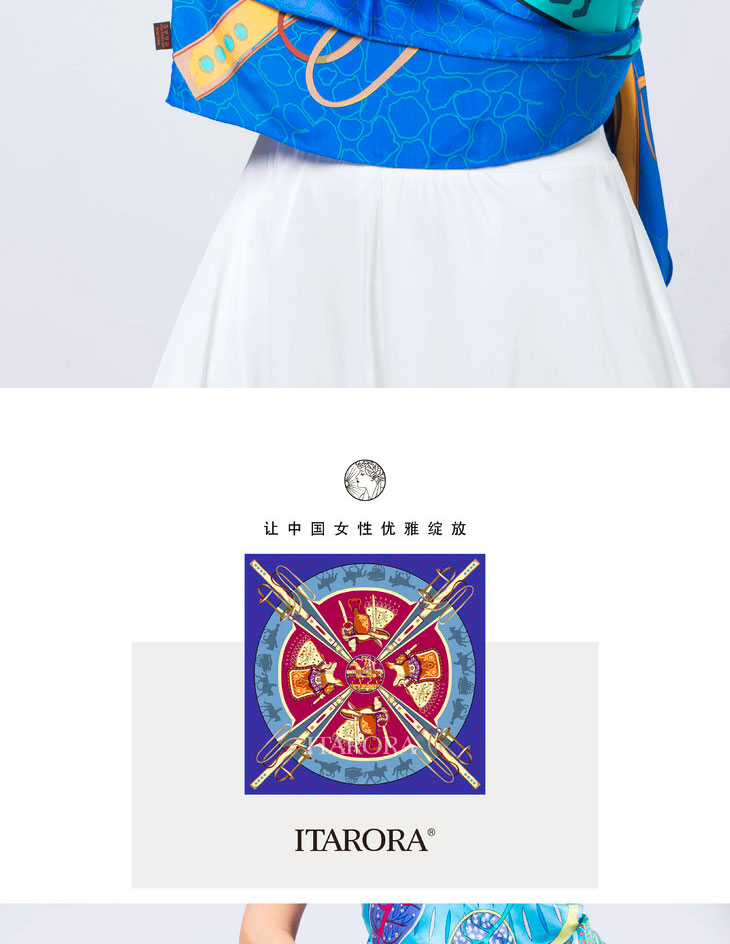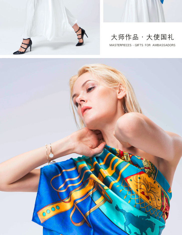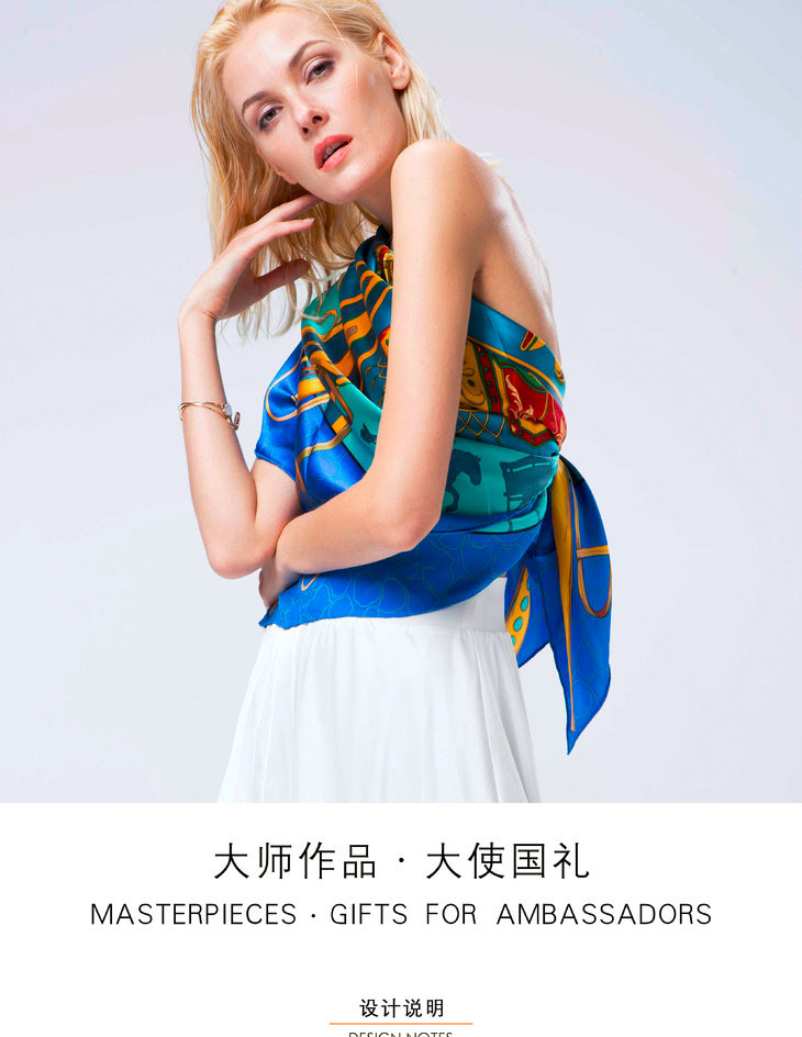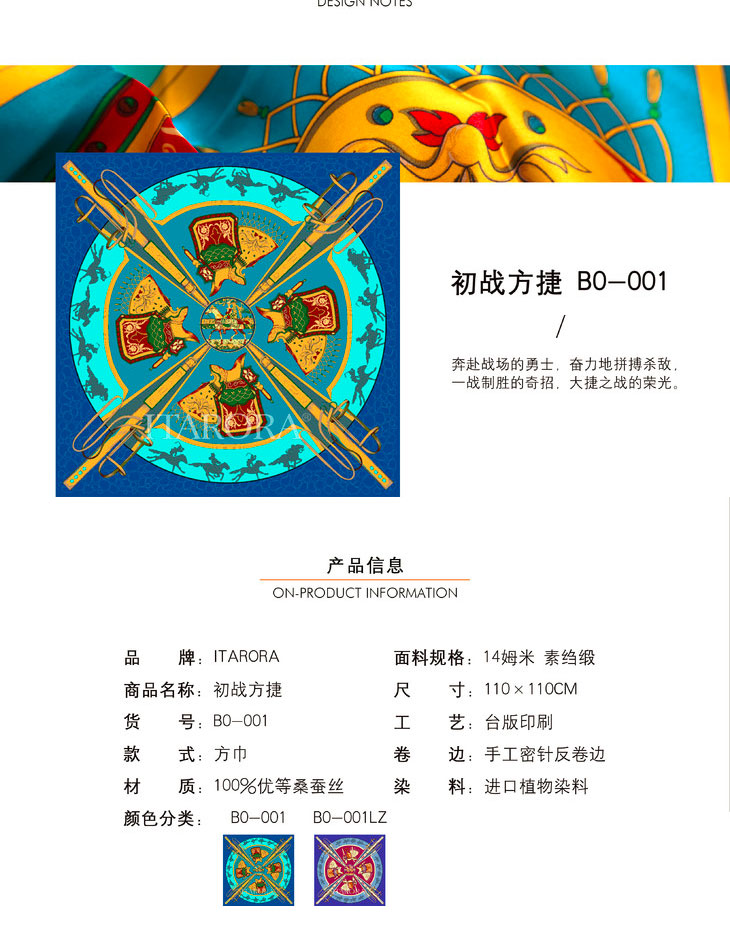 奥罗拉桑蚕丝巾/初战方捷/110*110CM/B0-001/粉·蓝