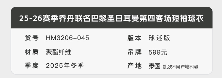小李子耐克25-26赛季乔丹联名巴黎第四客场球迷版球衣HM3206-045