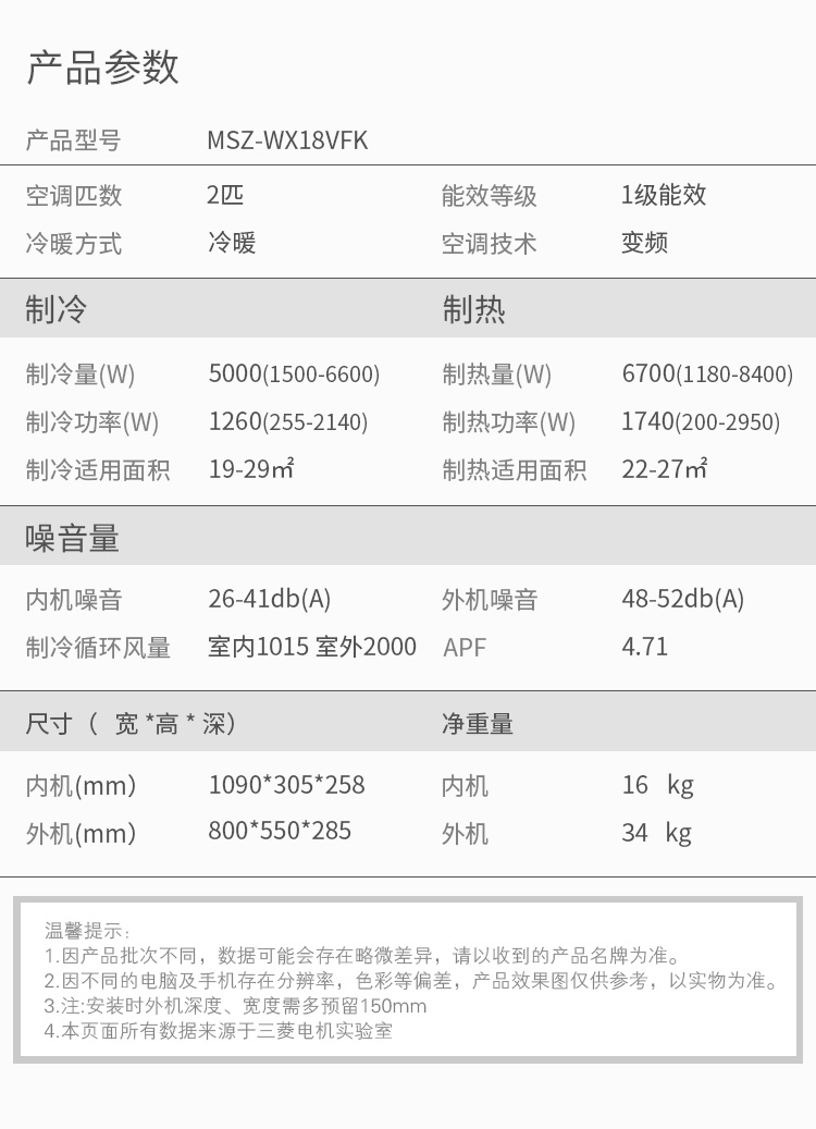 【国补15%】三菱电机 WX系列 新1级能效WIFI智能控制 全域慧眼Plus 变频冷暖空调挂机 2匹 一级能效 MSZ-WX18VFK/WX20VFK/WX25VFK