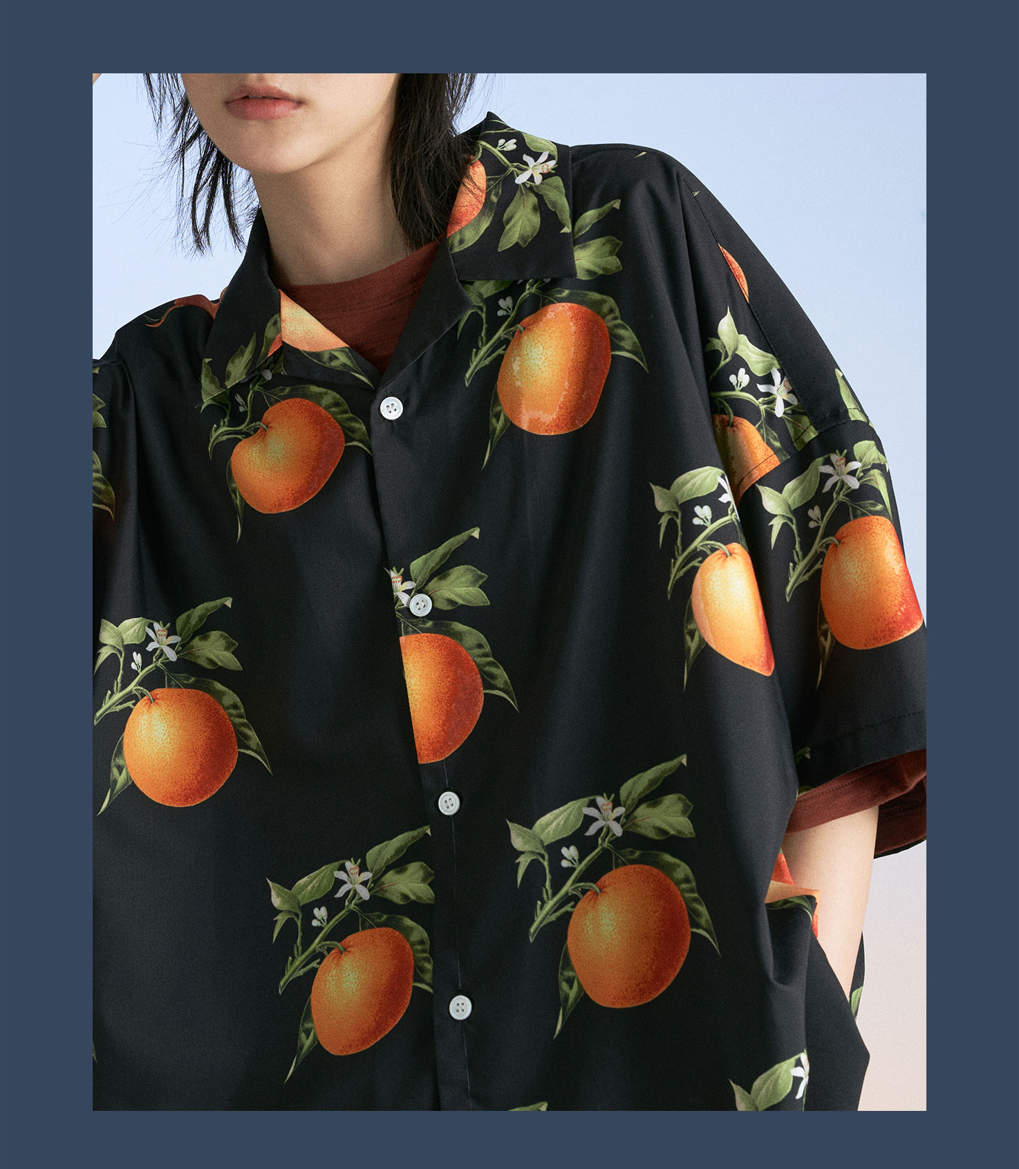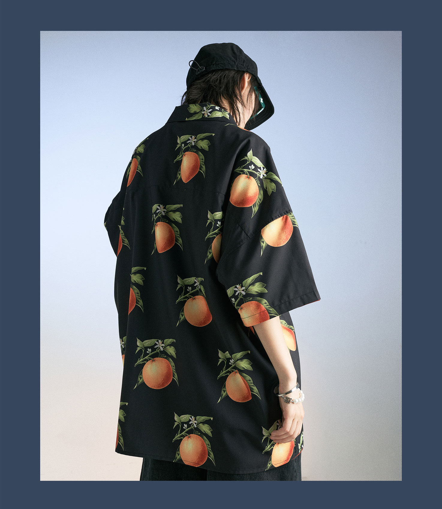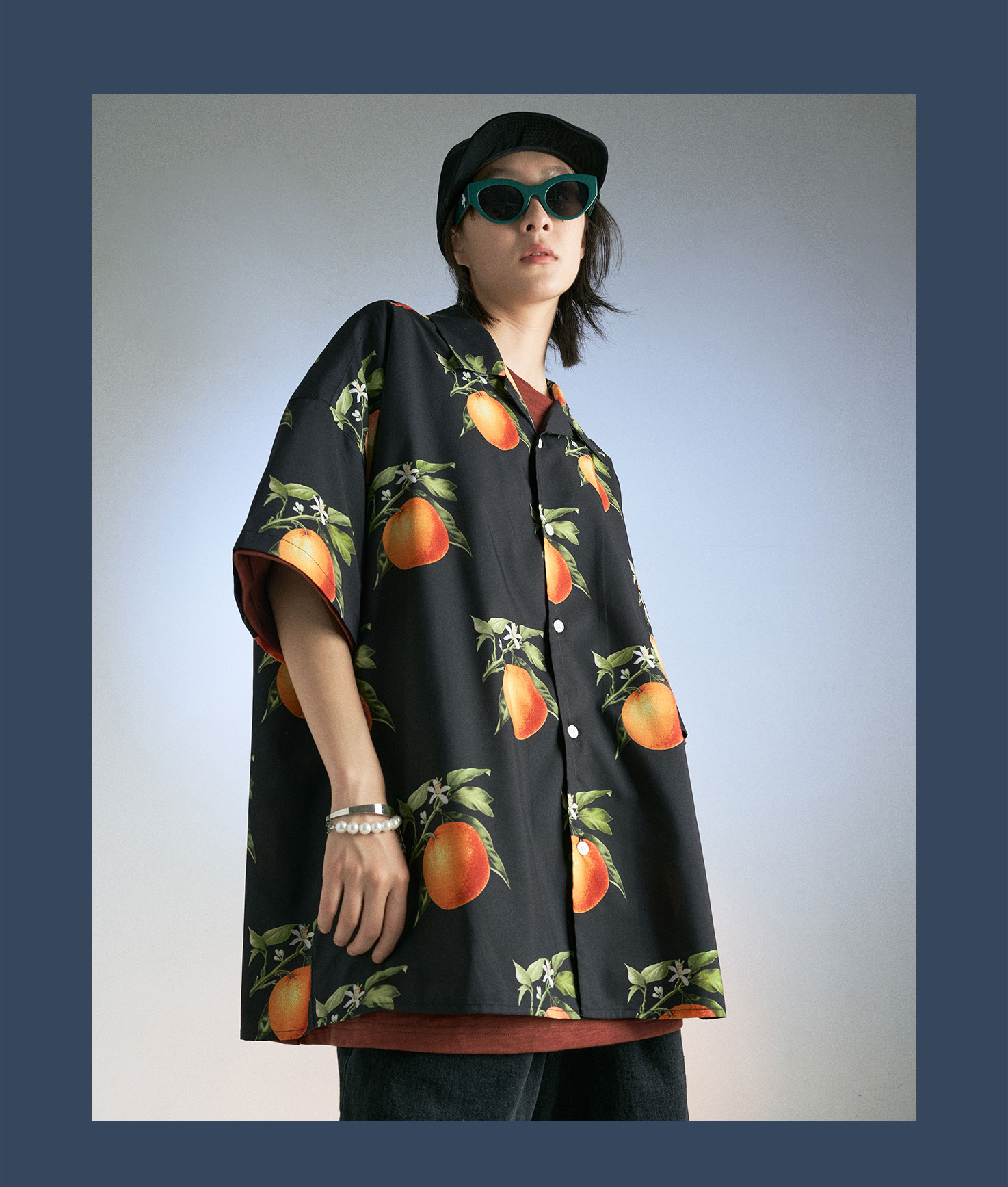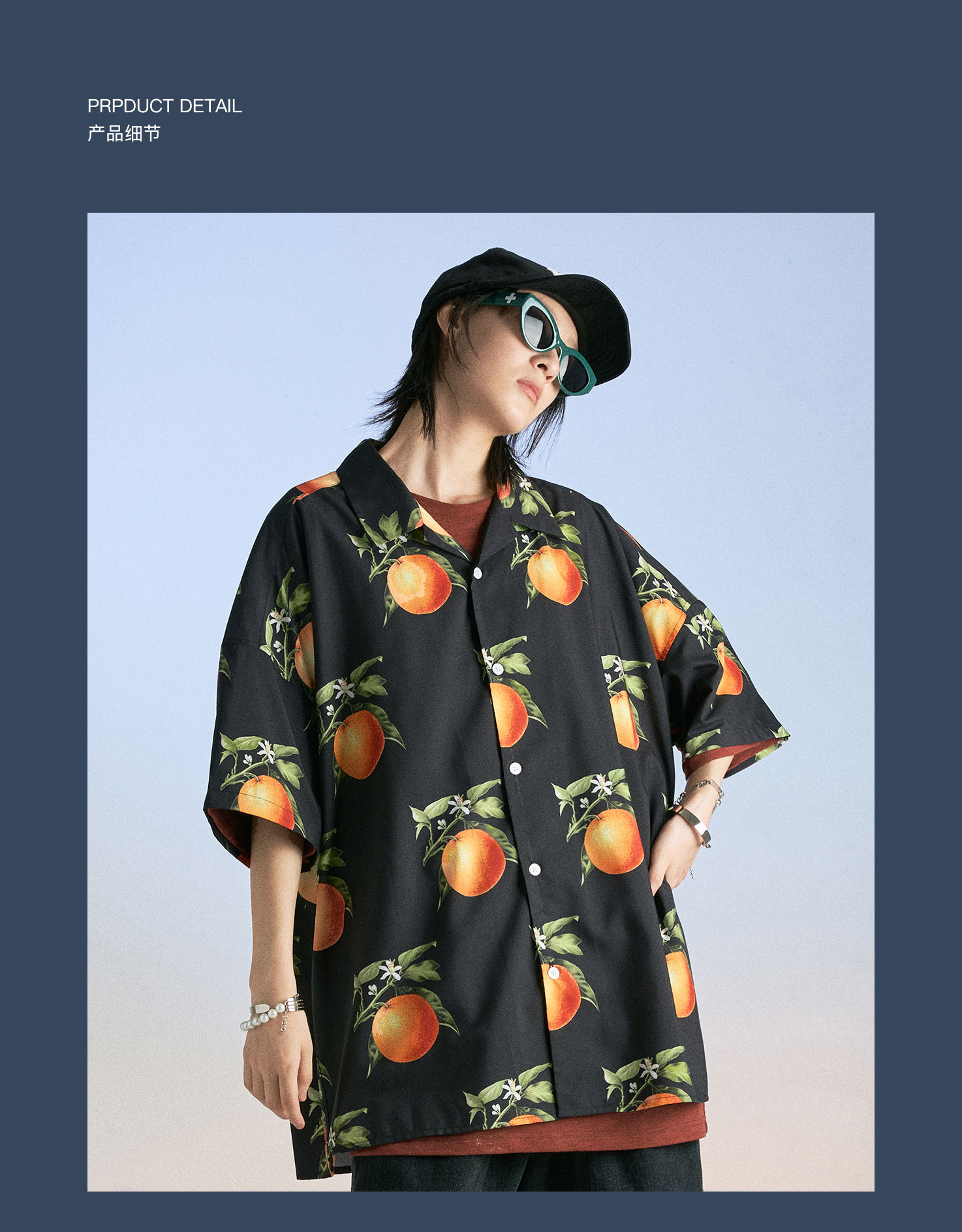 MODITEC 20SS复古甜橙花朵古巴mojito衬衫宽松夏威夷衬衣国潮嘻哈