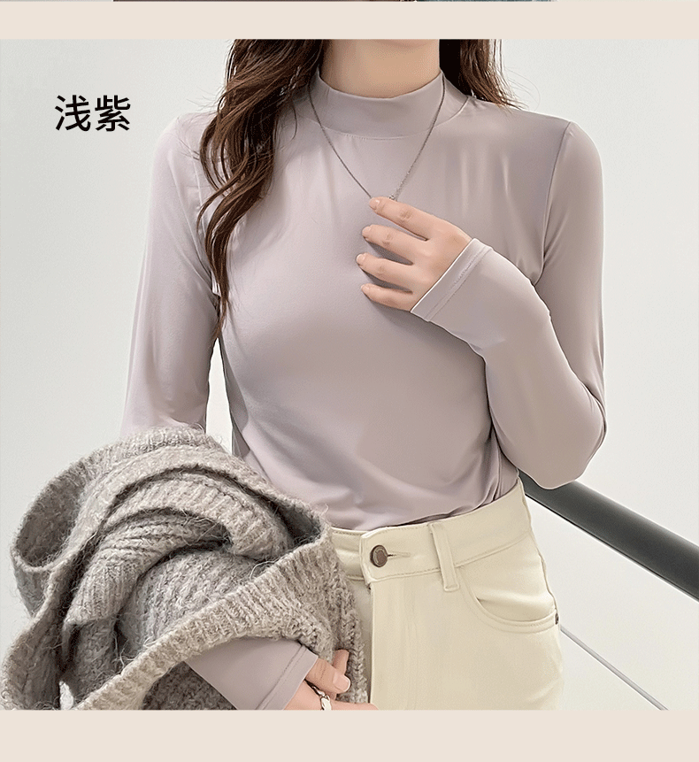 玻尿酸蚕丝蛋白打底衫女加绒加厚半高领长袖内搭保暖秋冬上衣女士 商品图2