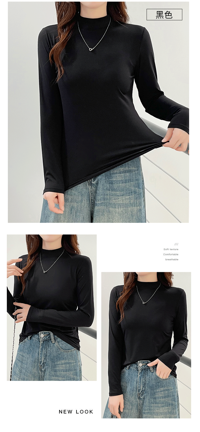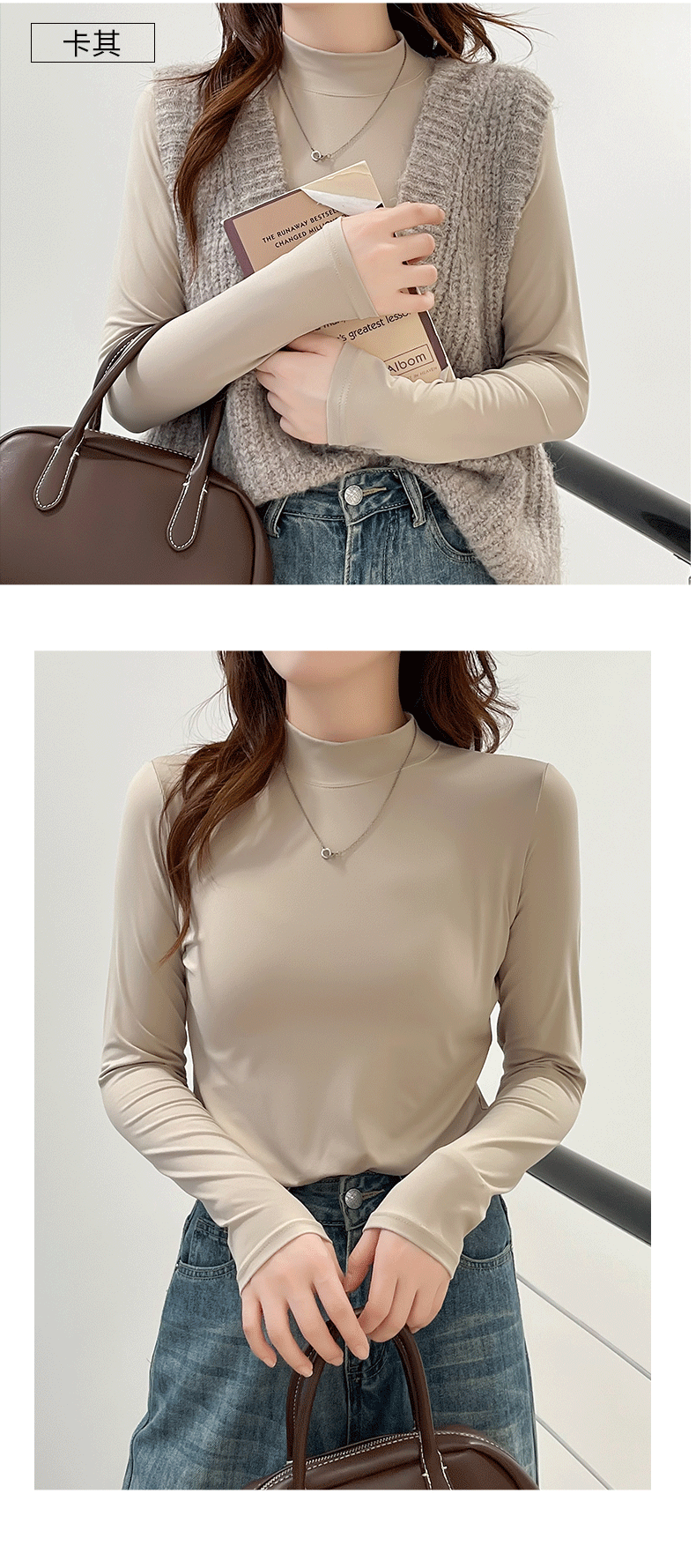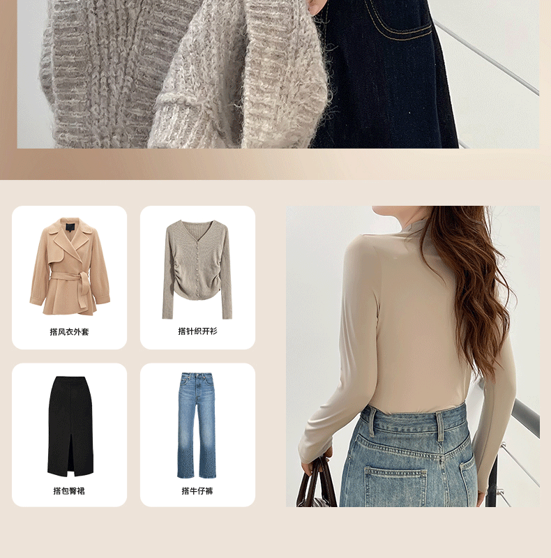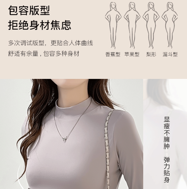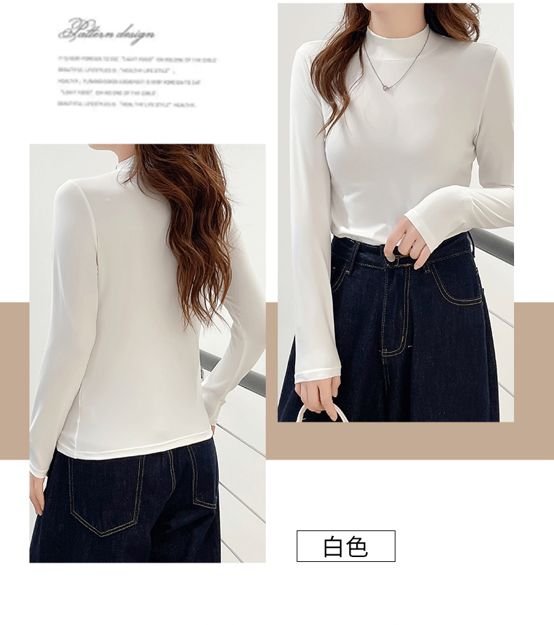 玻尿酸蚕丝蛋白打底衫女加绒加厚半高领长袖内搭保暖秋冬上衣女士 商品图3