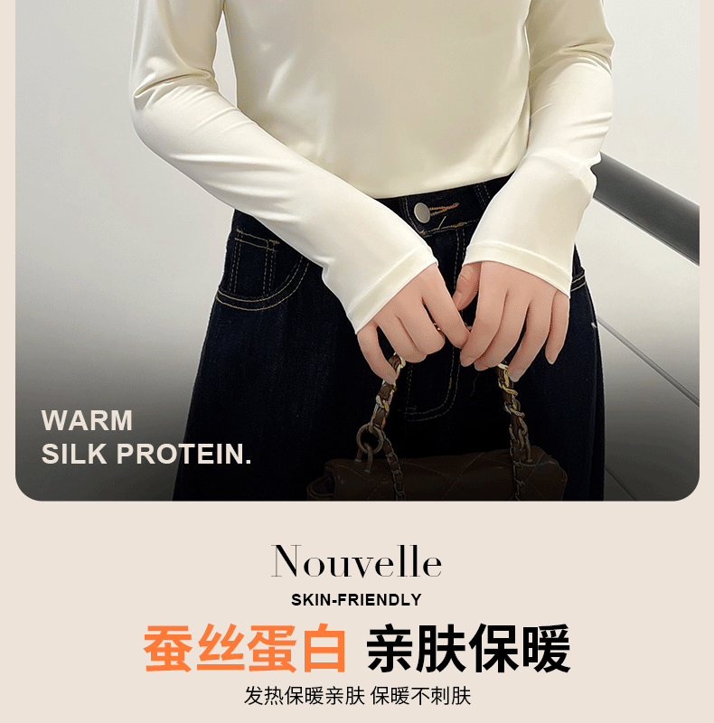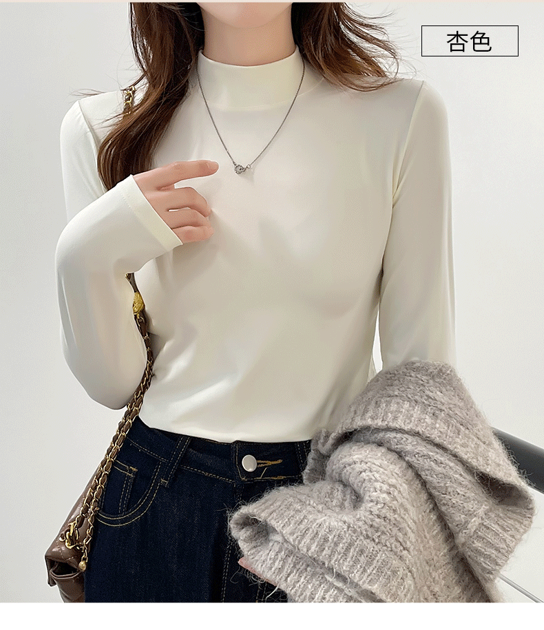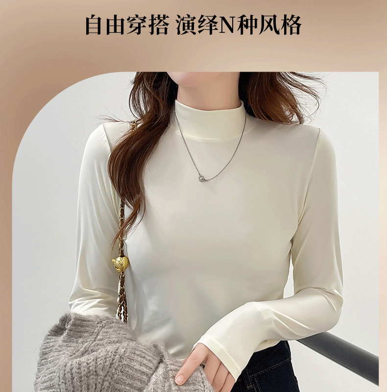 玻尿酸蚕丝蛋白打底衫女加绒加厚半高领长袖内搭保暖秋冬上衣女士 商品图0