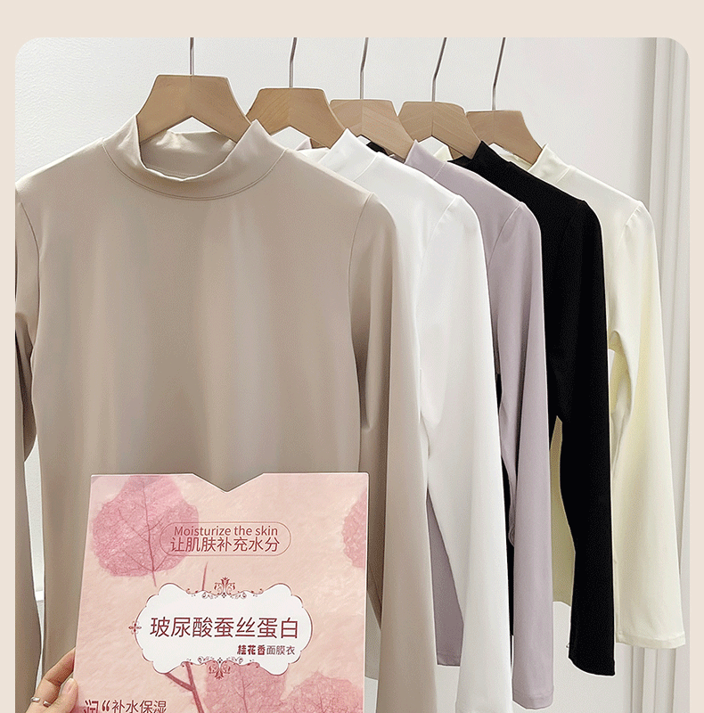 玻尿酸蚕丝蛋白打底衫女加绒加厚半高领长袖内搭保暖秋冬上衣女士