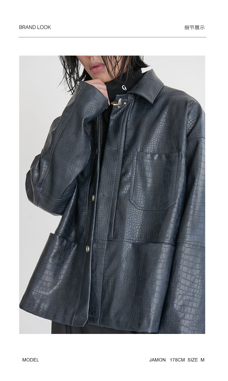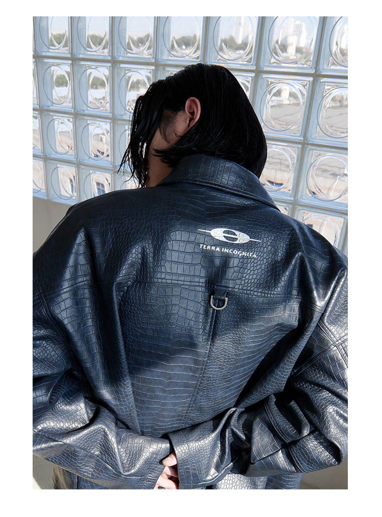TERRAINCOGNITA原创新款PU皮短款鳄鱼纹皮衣宽松廓形百搭休闲外套