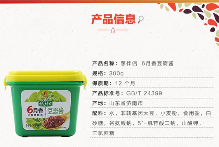 葱伴侣 6月香豆瓣酱 300g/盒