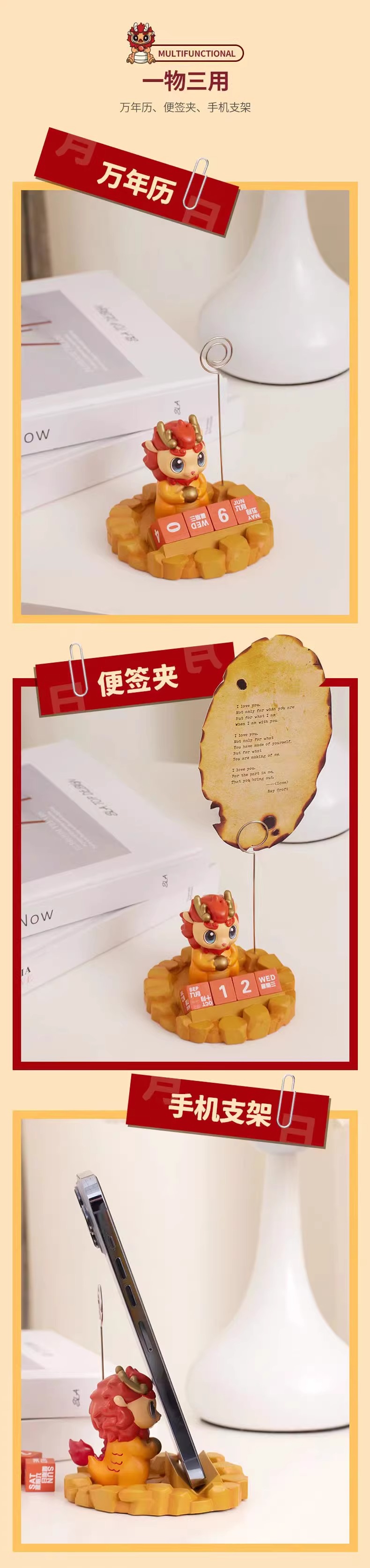 大英博物馆龙年系列 萌龙献珠日历便签夹手机支架 桌面小摆件