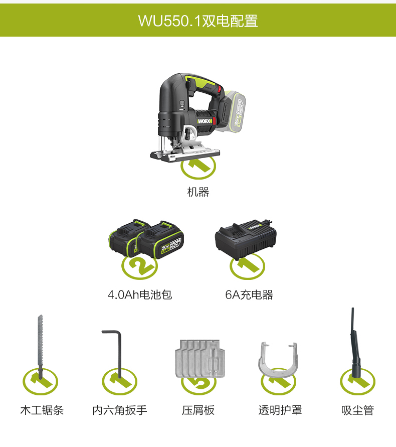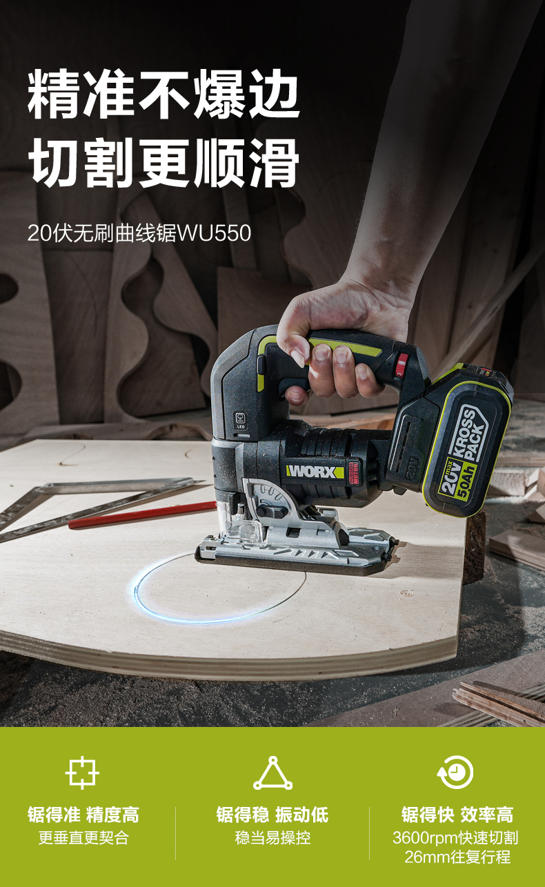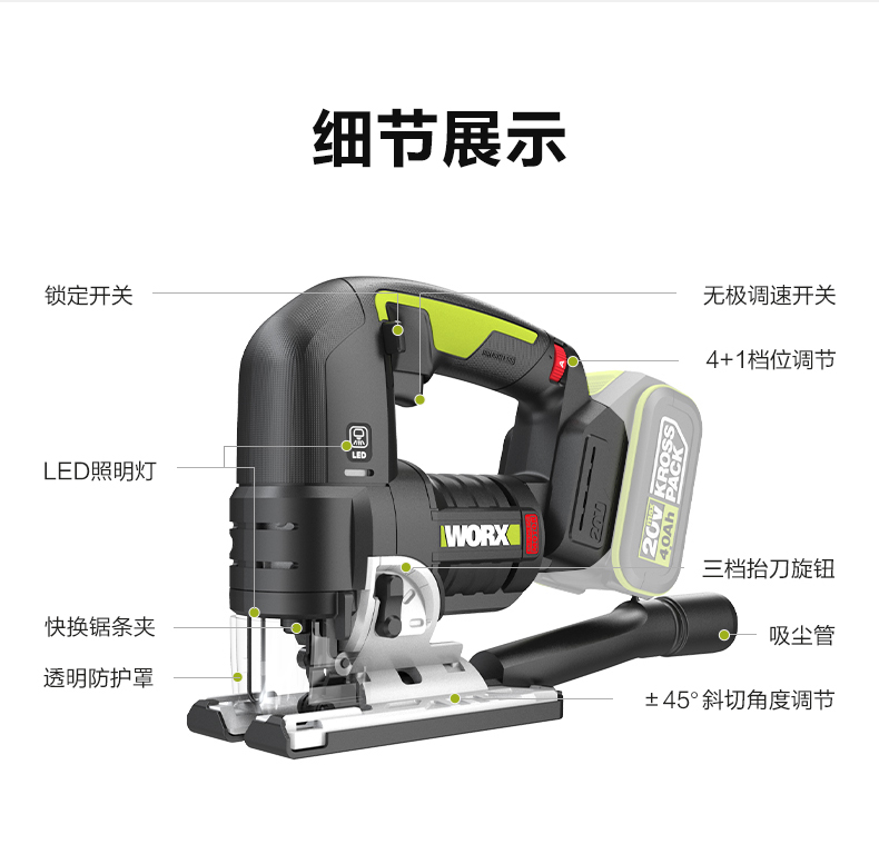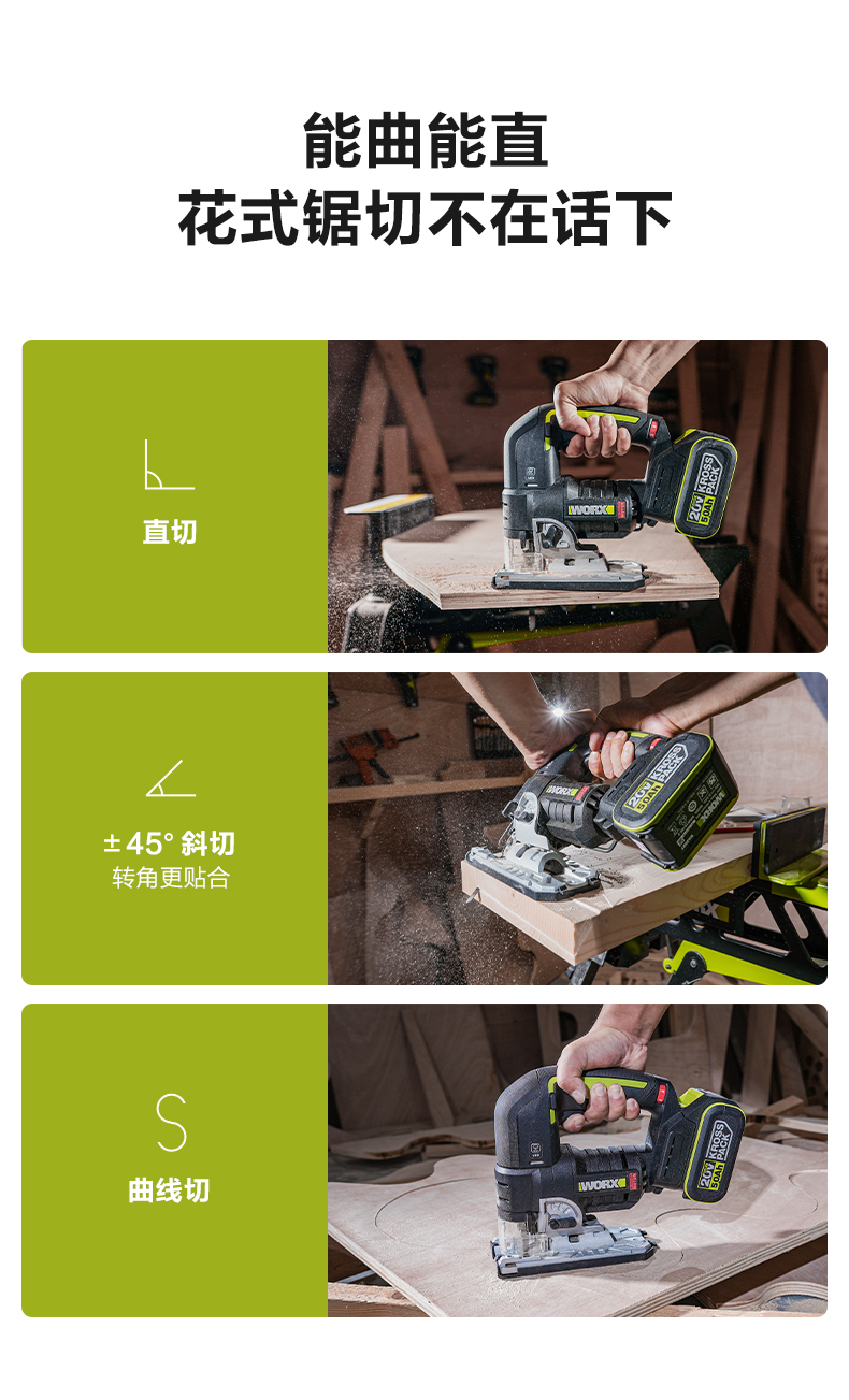 威克士锂电曲线锯WU550往复锯多功能五金家用木工电动工具