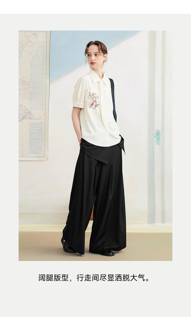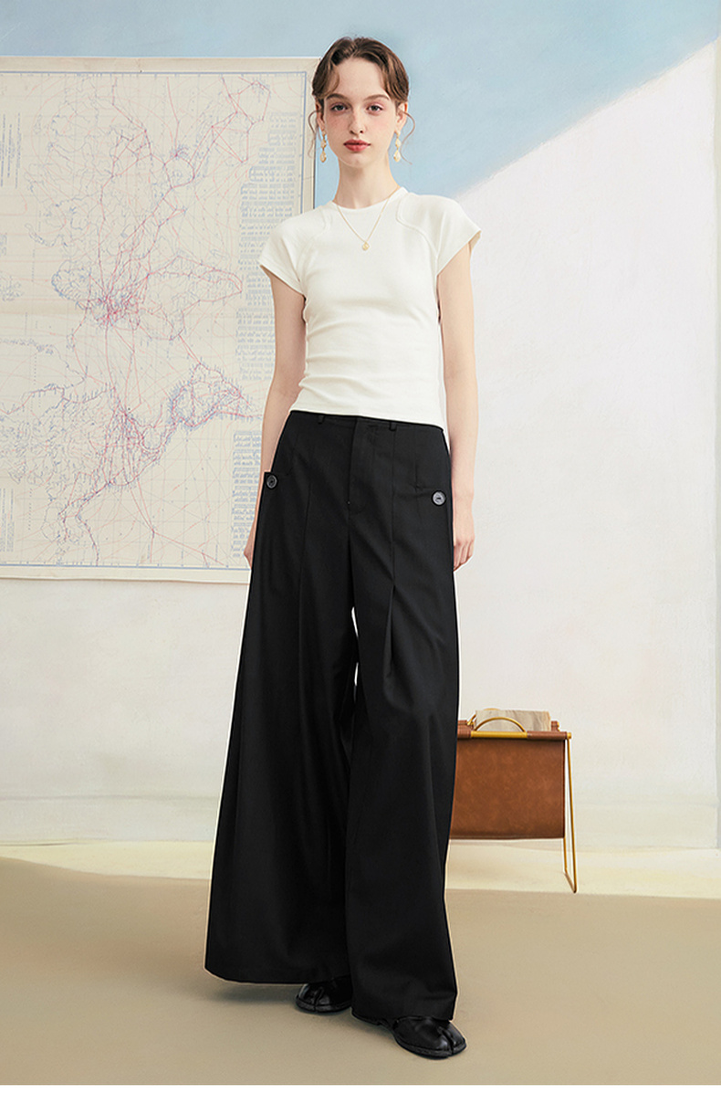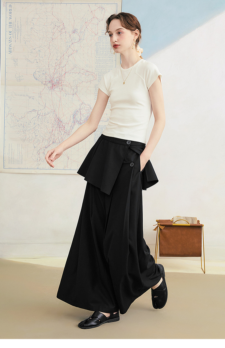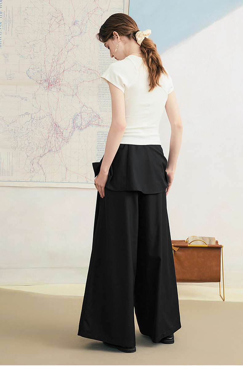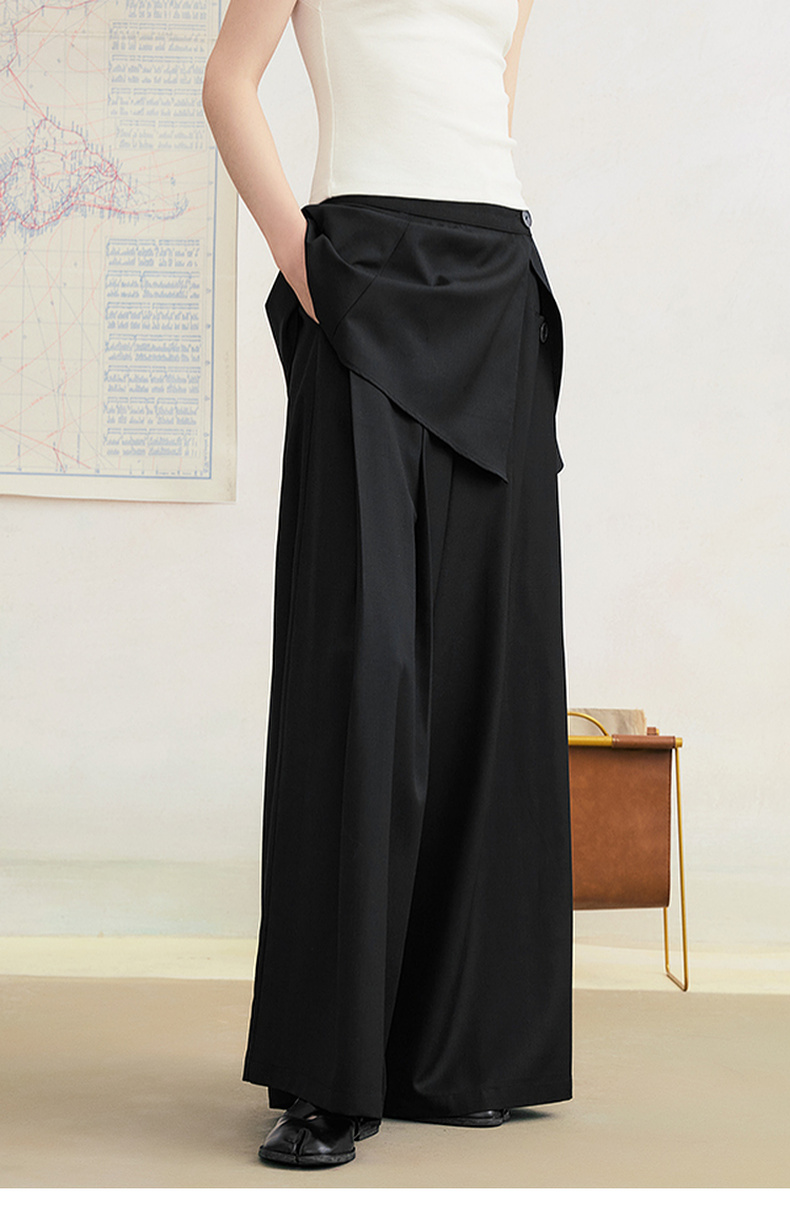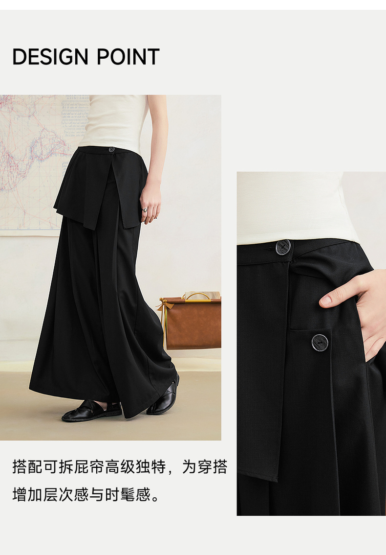 两三事琥珀夜曲2025夏季新款简约黑色可拆屁帘阔腿裤女宽松休闲裤