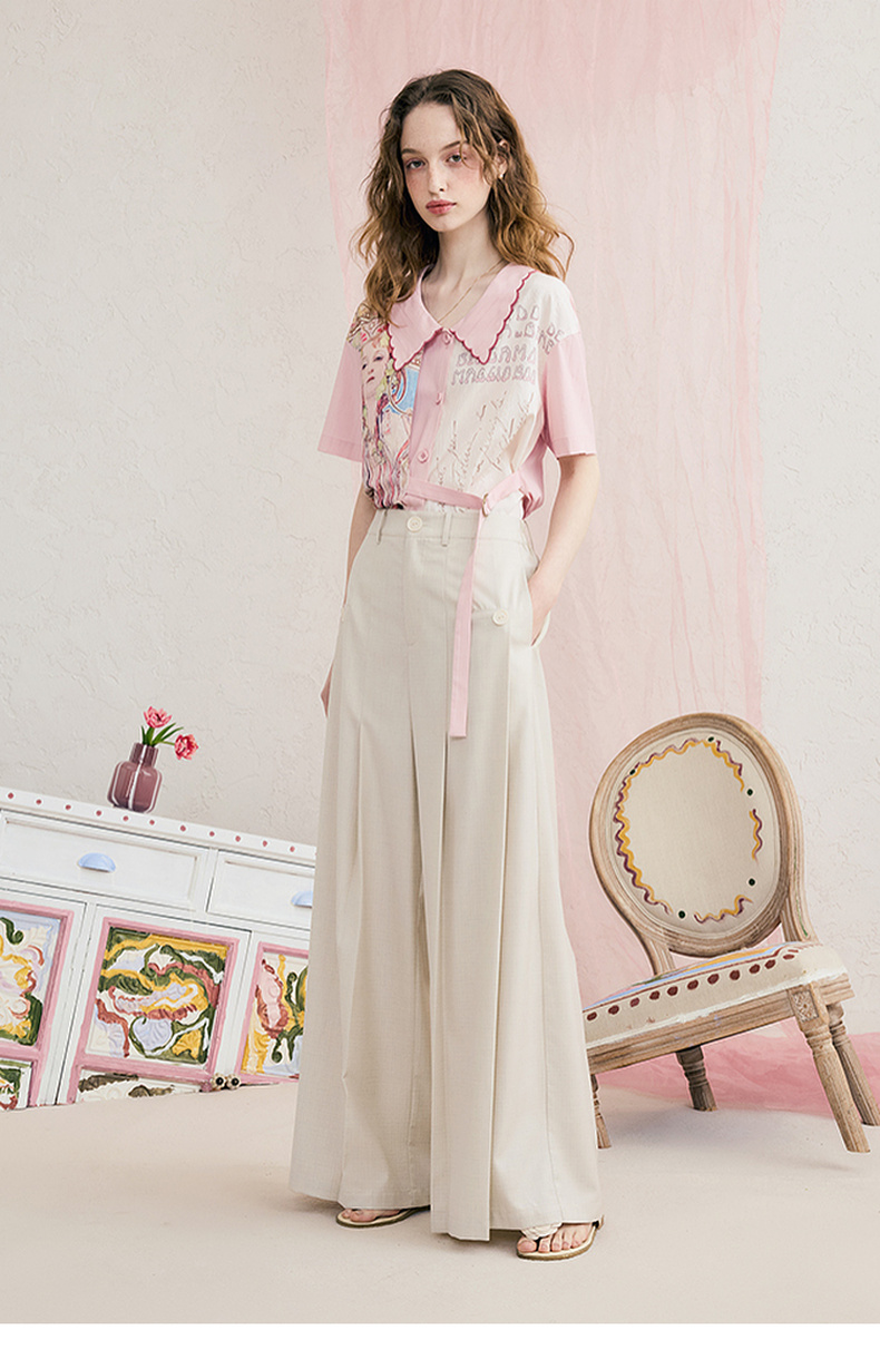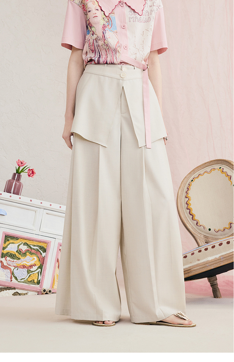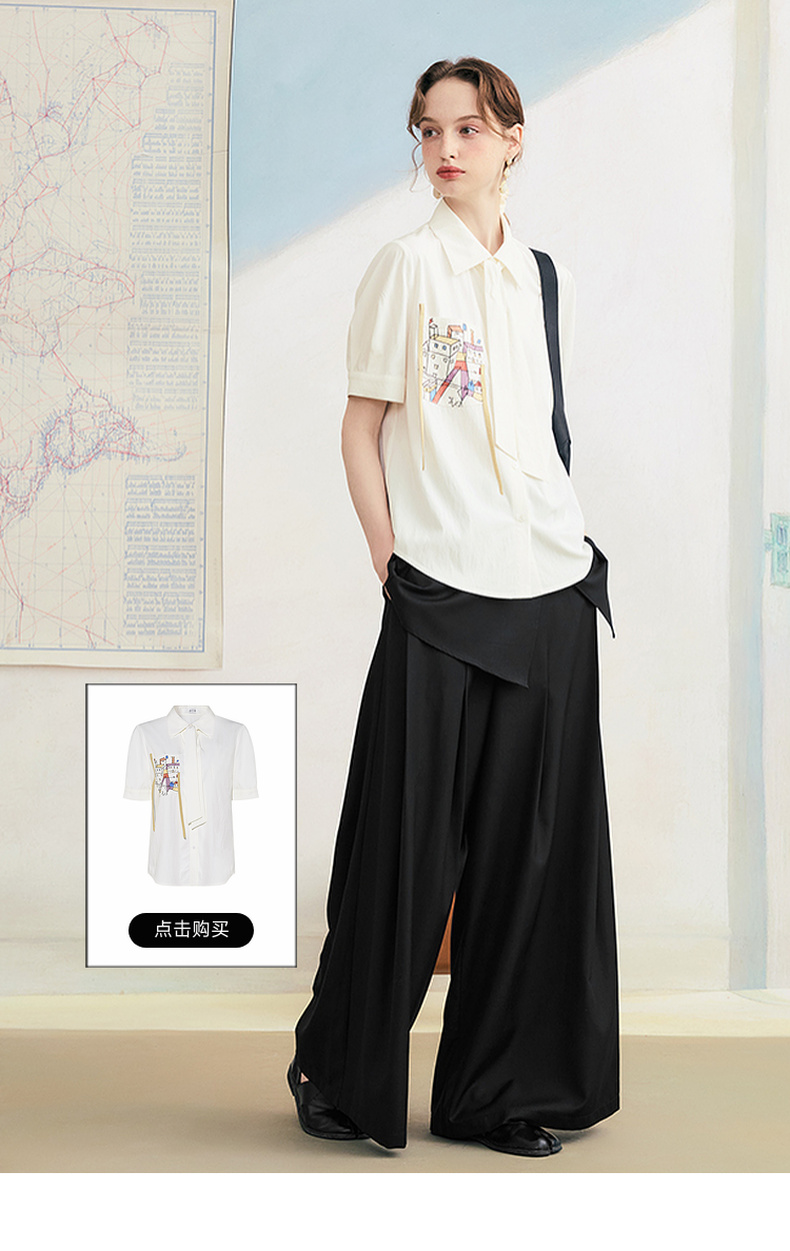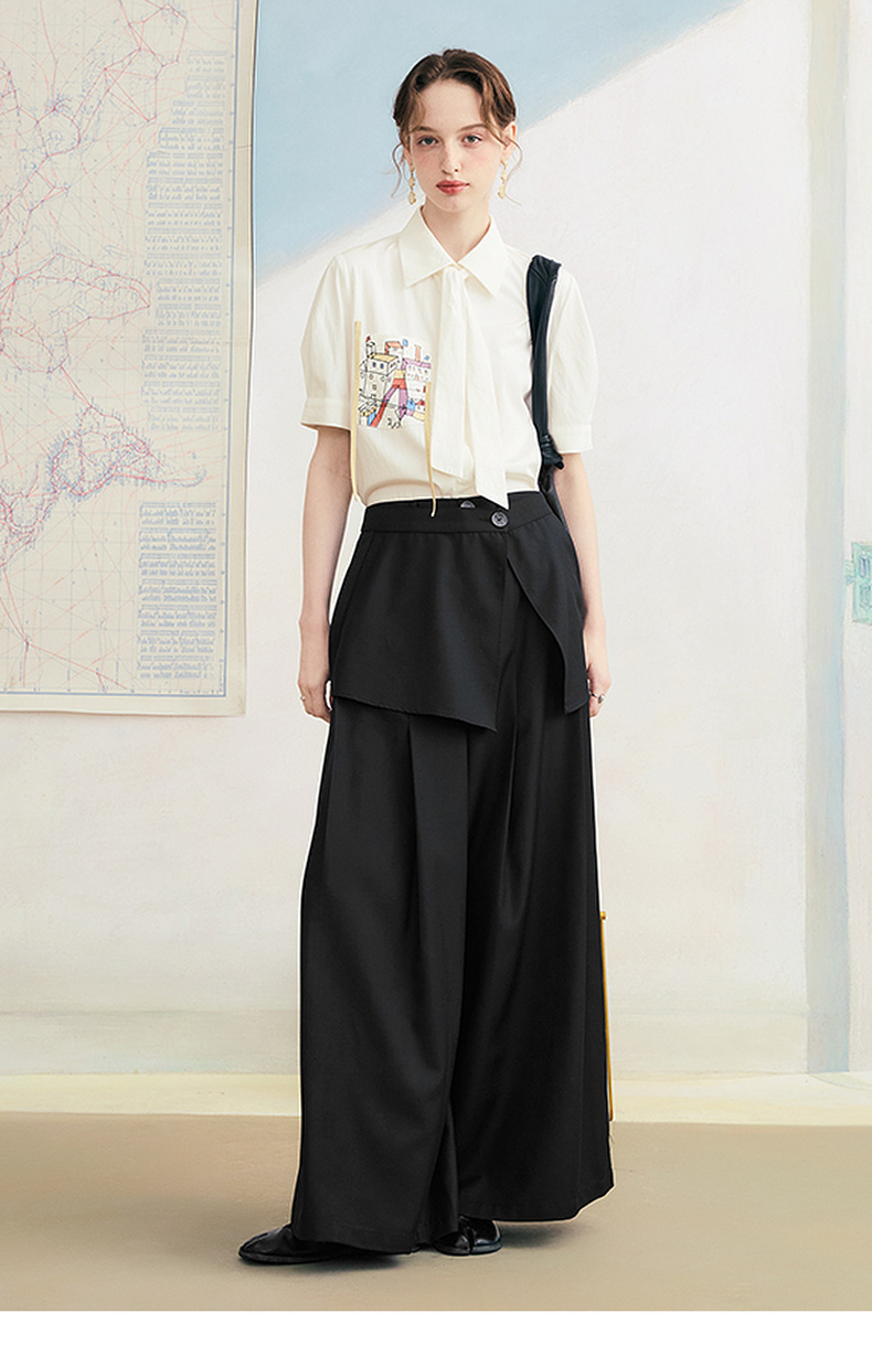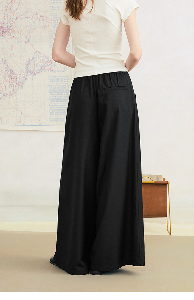 两三事琥珀夜曲2025夏季新款简约黑色可拆屁帘阔腿裤女宽松休闲裤