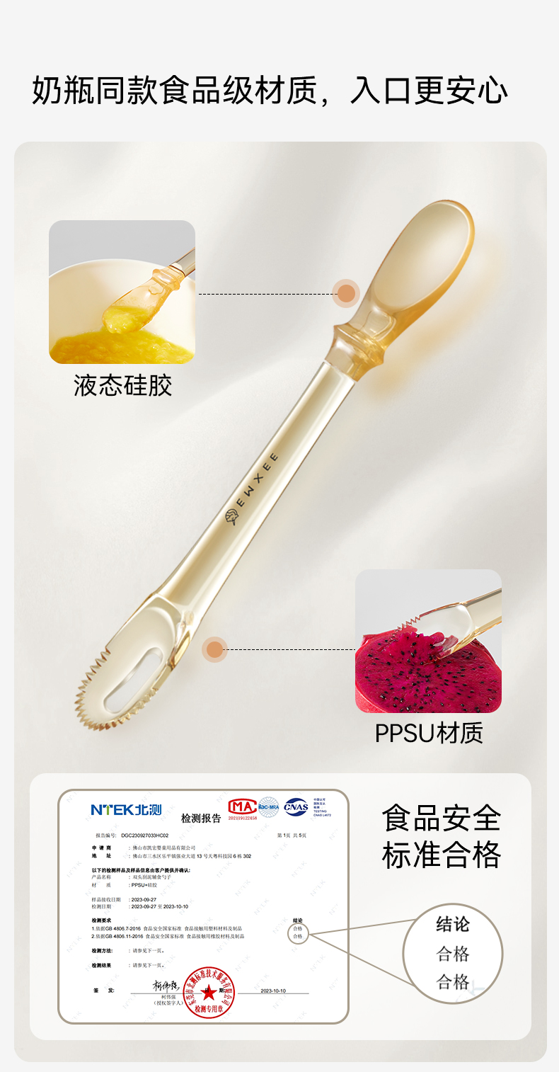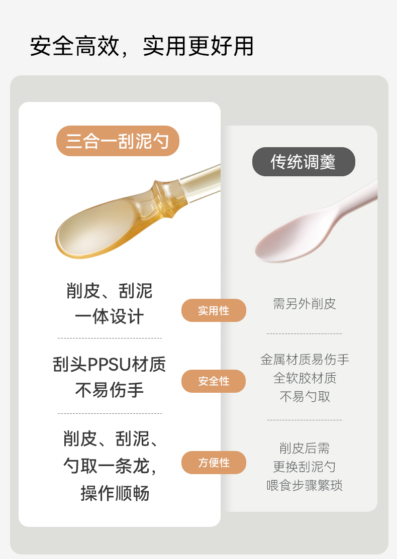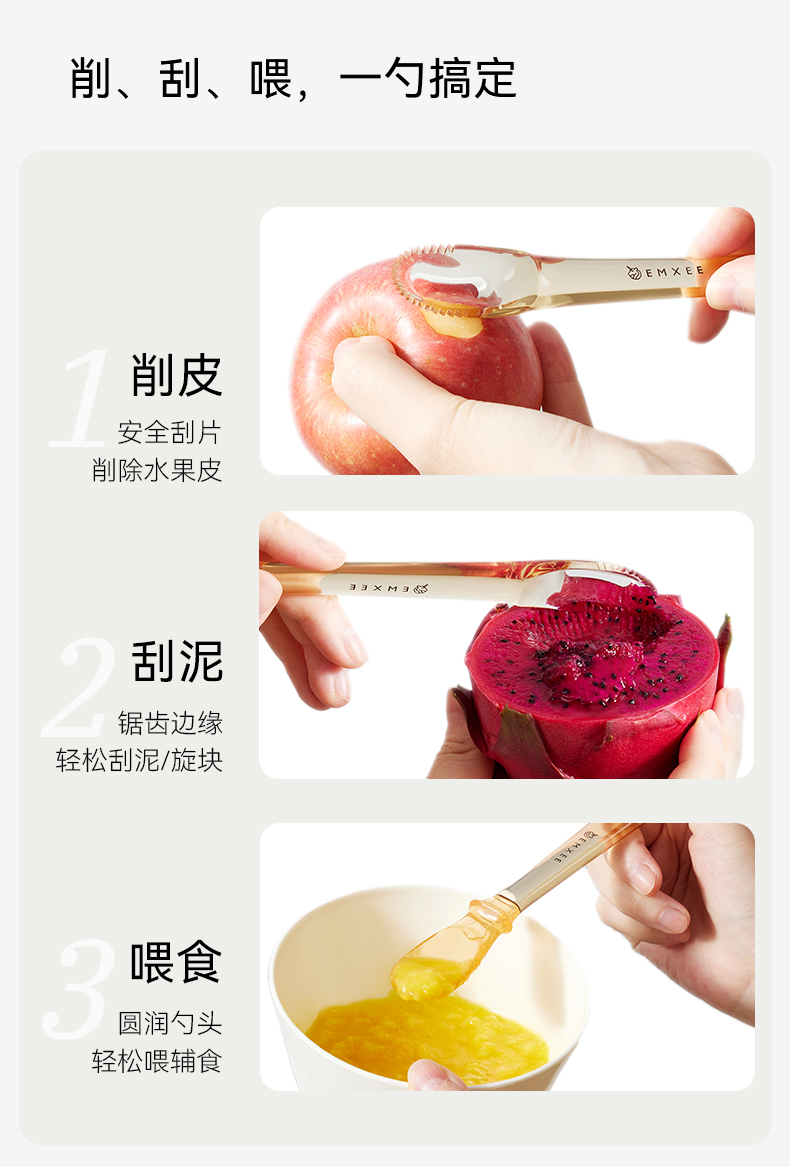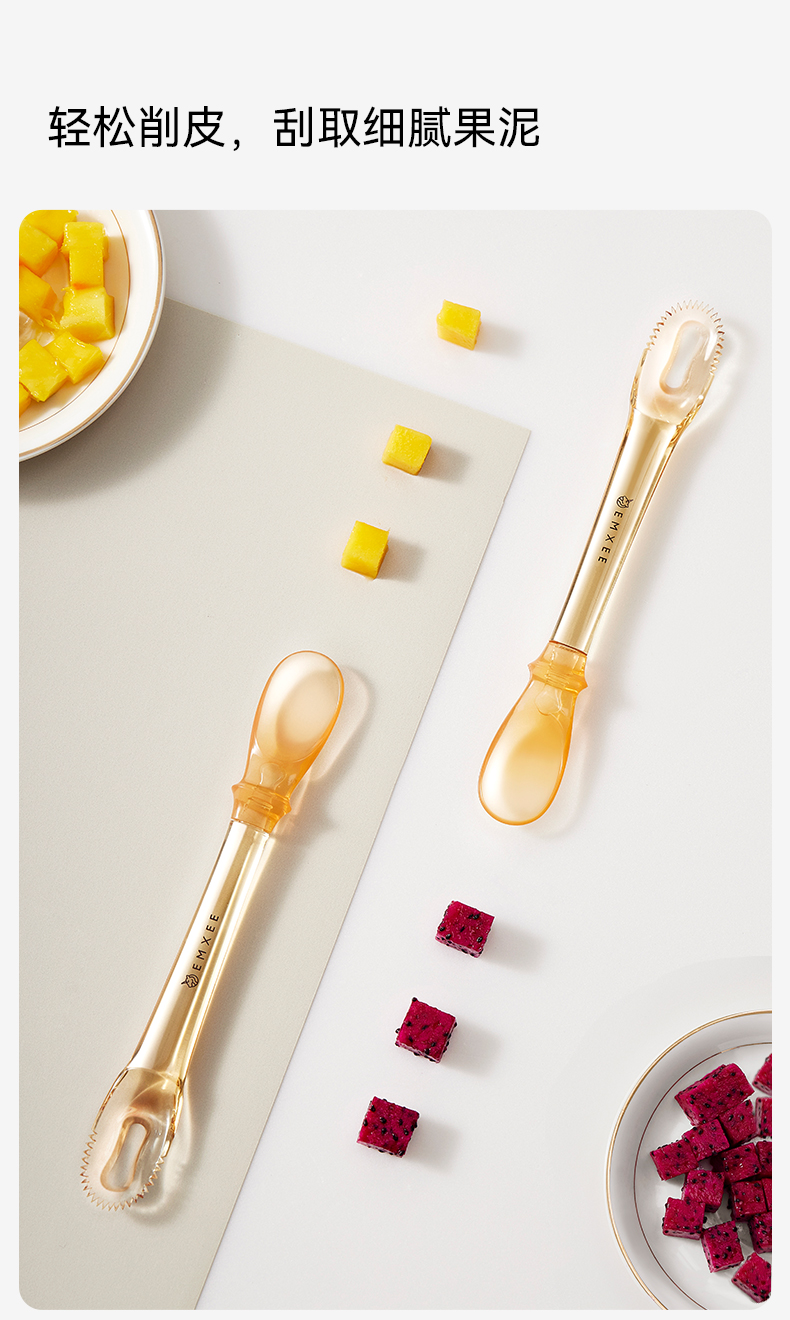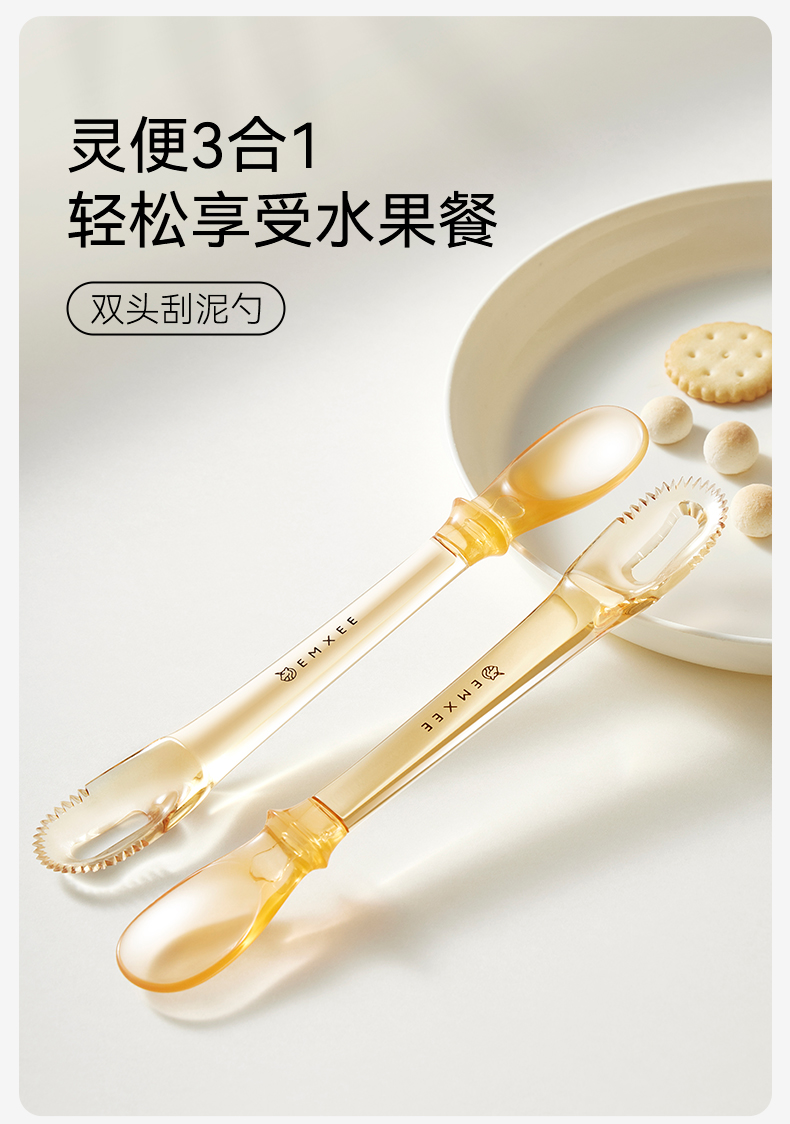 【辅食餐具】嫚熙刮泥勺婴儿三合一吃水果泥勺工具双头喂养勺宝宝硅胶辅食勺子