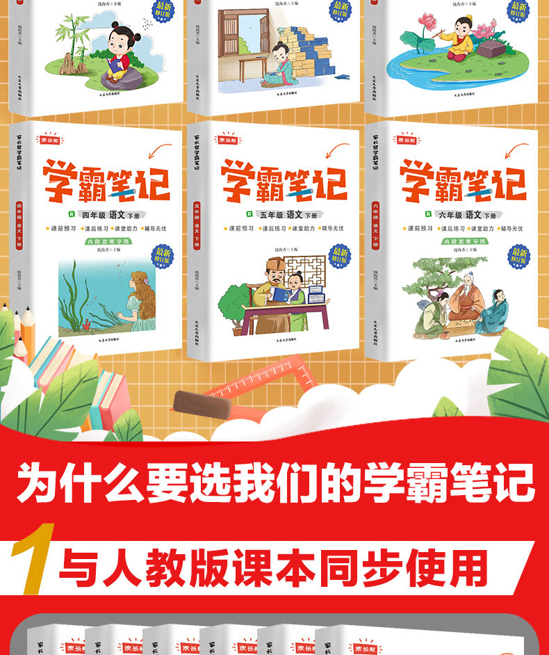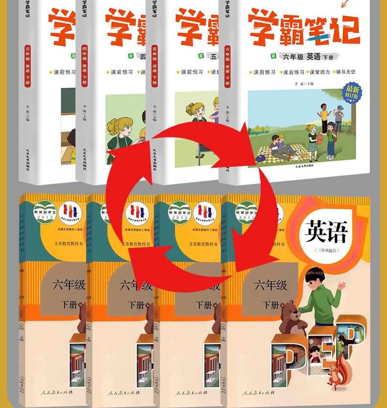 学霸笔记数学语文英语1—6年级下册人教版课前预习课后练习复习
