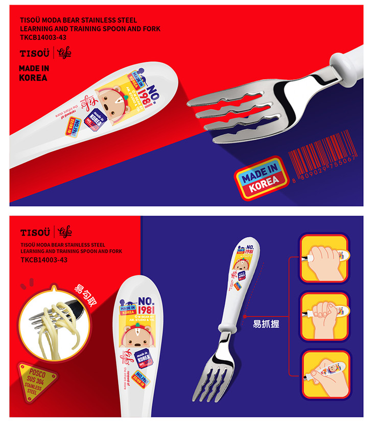 韩国 爱婴小铺 儿童不锈钢训练叉勺套装 2Y+