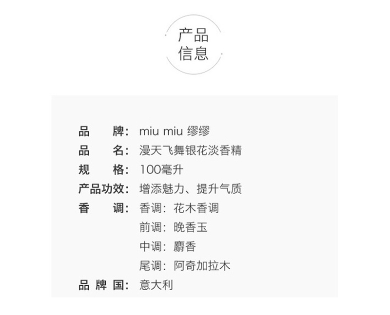 miu miu缪缪 漫天飞舞银花淡香水(粉盖)