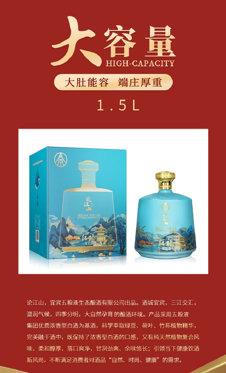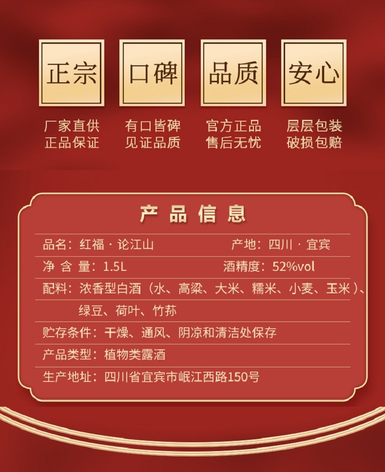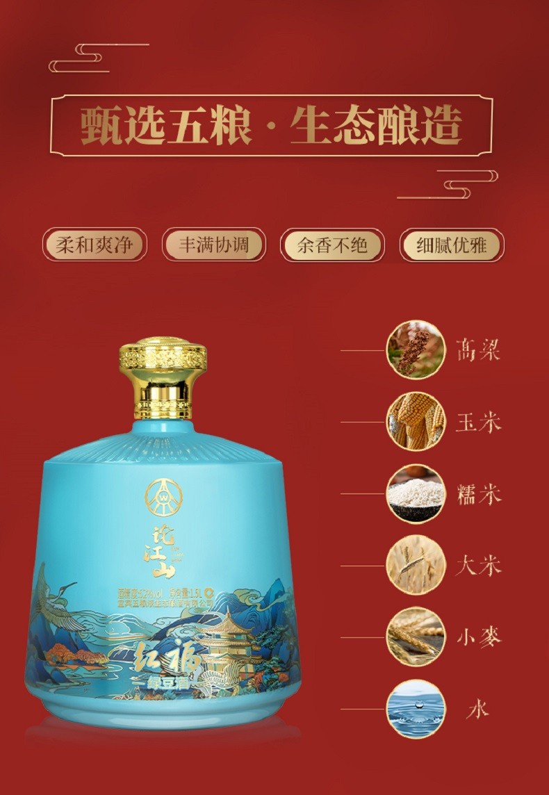 宜宾五粮液生态酿酒 论江山红福绿豆酒52度1.5L白酒礼盒装坛装
