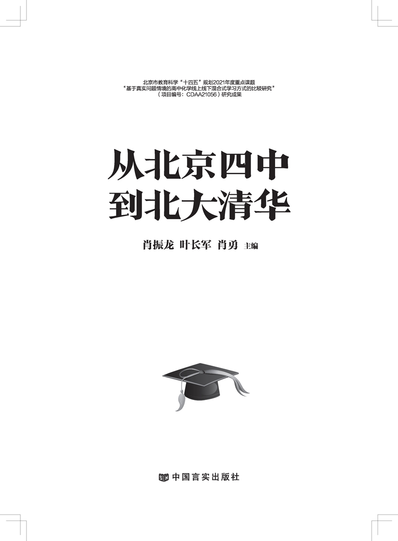 作者介绍: 肖振龙,高级教师,北京市第四中学校长助理,研究领域为生物学教学和综合实践活动课程实践。参与编写高中生物学北师大版教材《必修1分析与细胞》,参与研究的“北京四中道元班拔尖创新人才培养”课程实践获国家级教育成果二等奖。 叶长军,正高级教师,北京市特级教师,西城区优秀教师,北京市第四中学教学处主任助理,首都师范大学全日制教育硕士生导师,西城区“叶长军中学化学名师工作室”负责人。出版图书《从北京四中到北大清华2》《高中时代当如此——奋斗在北京四中的幸福生活》等13本,在国内外核心期刊上发表论文38篇,主持全国、北京市教育科学规划课题多项。 肖勇,高级教师,北京市第四中学道元校区教学主任,研究领域为语文教育。西城区优秀教师,“身边的陌生人”教学设计与实践获西城区教学设计特等奖。西城区教学设计特等奖。编写全国中小学生教育读本《中华优秀传统文化》等。 |
