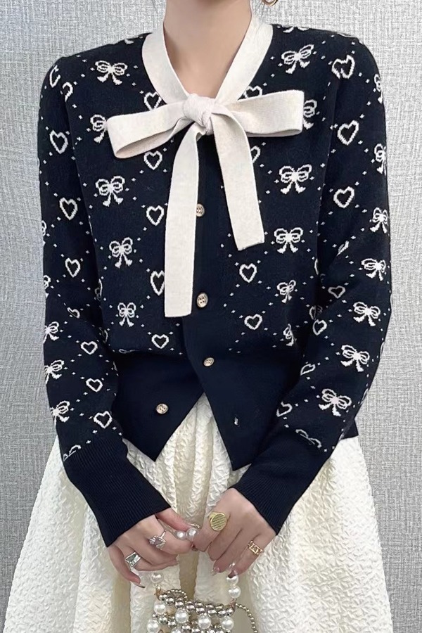 amadella 复古甜美减龄撞色蝴蝶结针织开衫 17516