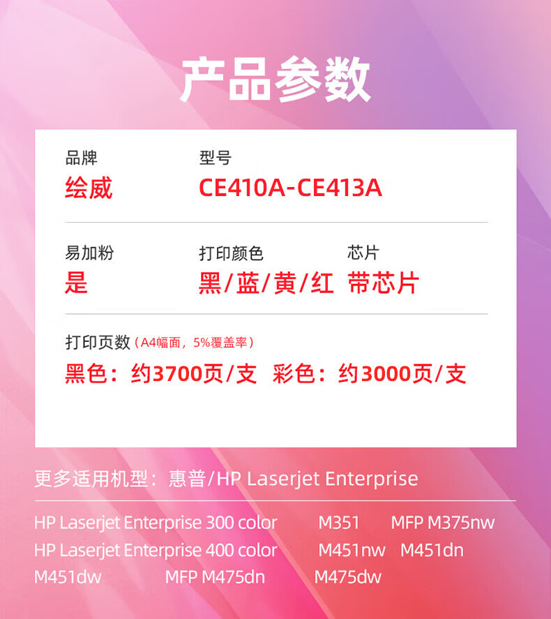 绘威CE410A四色易加粉硒鼓套装 适用惠普HP M351 M375nw M451nw M451dn M451dw M475dn M475dw打印机墨盒粉盒
