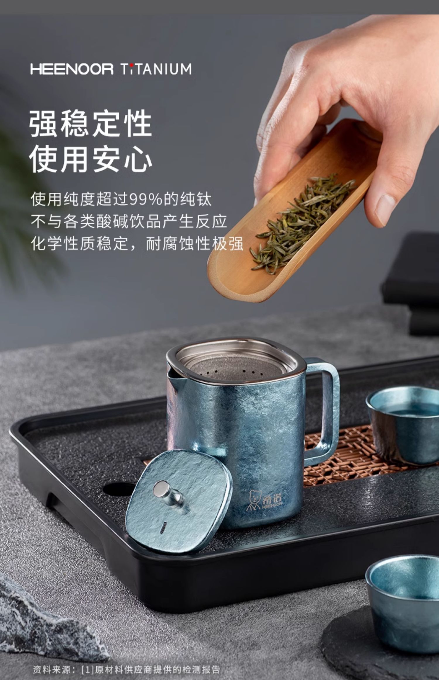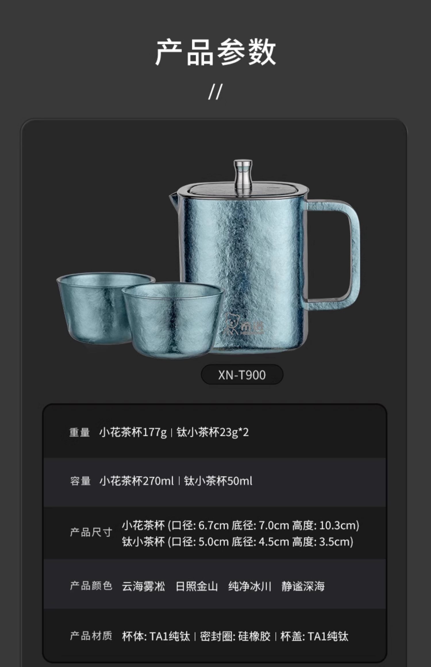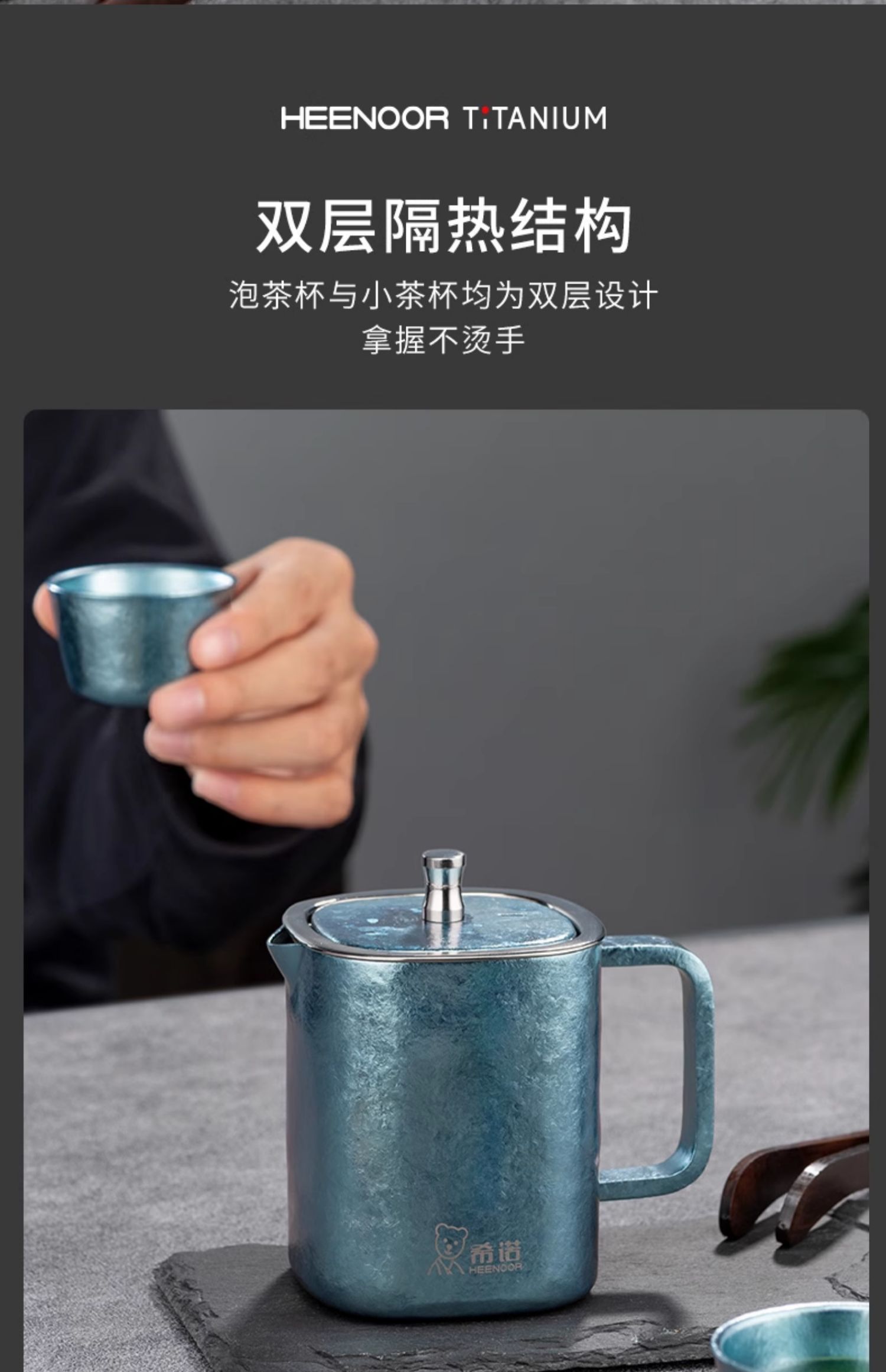 【纯钛茶具一壶二杯礼盒】希诺纯钛功夫茶具套装一壶二杯高档家用泡茶壶礼盒送礼长辈小茶杯