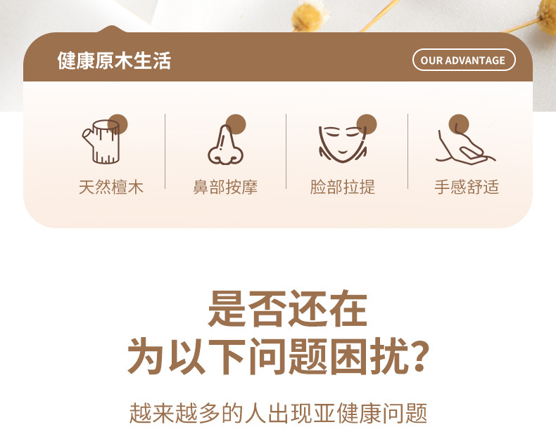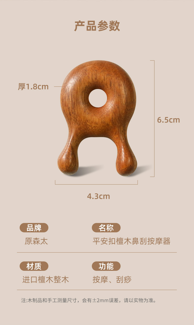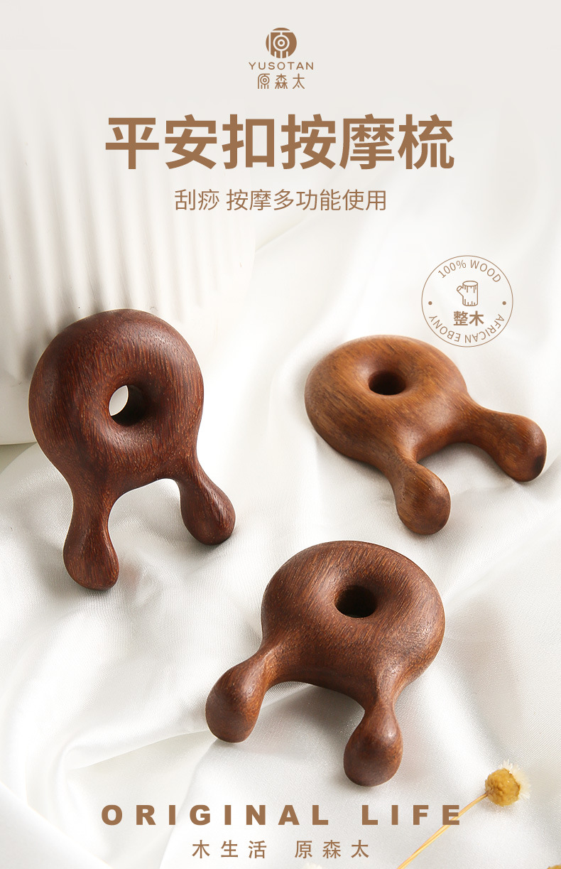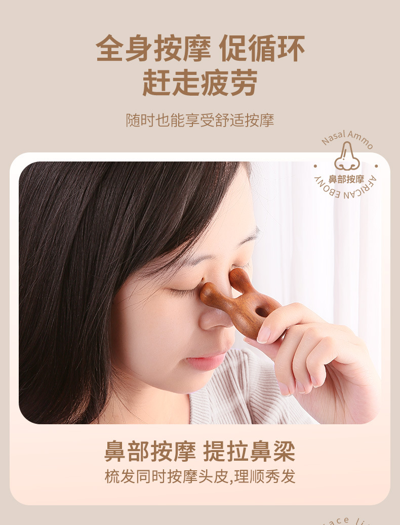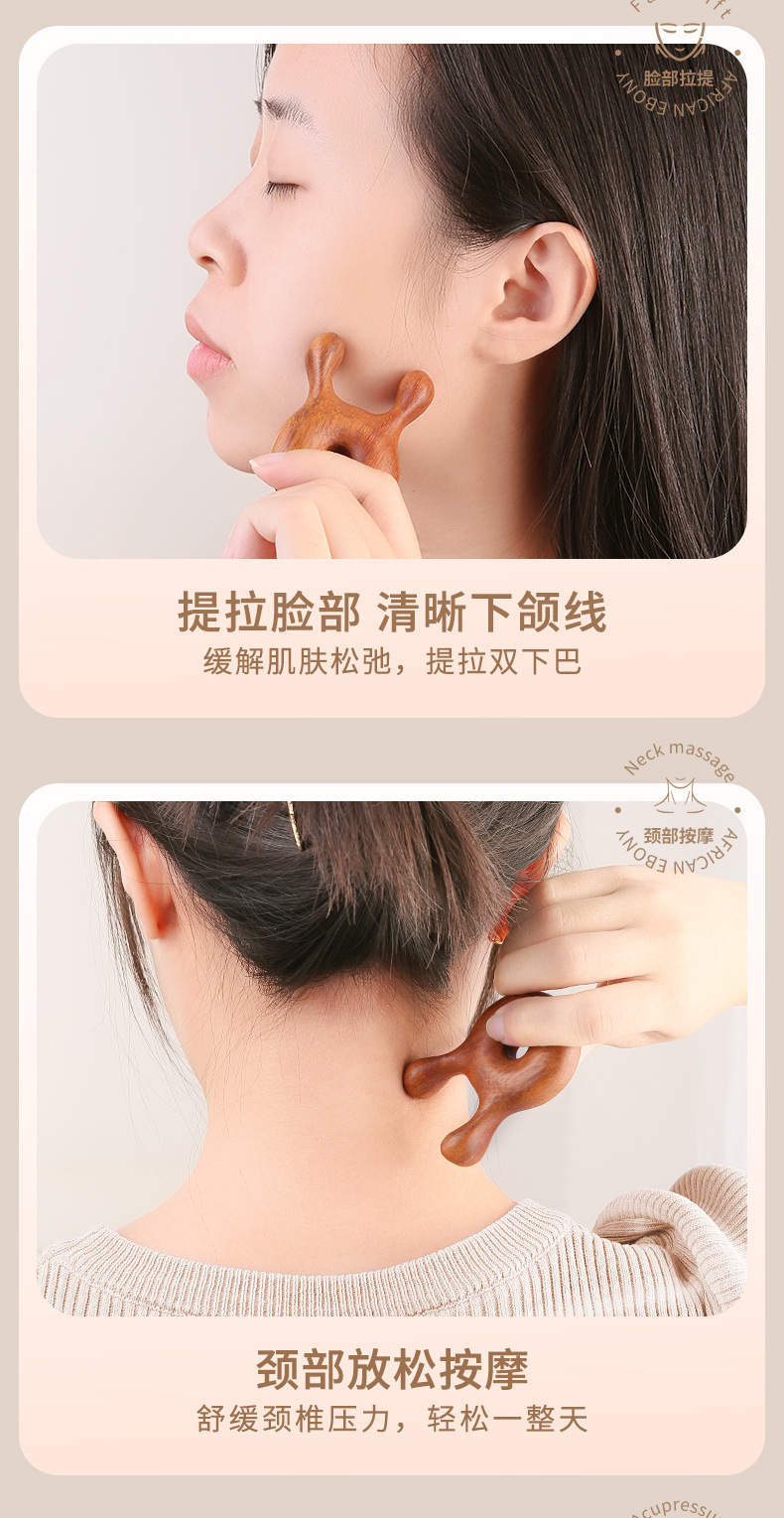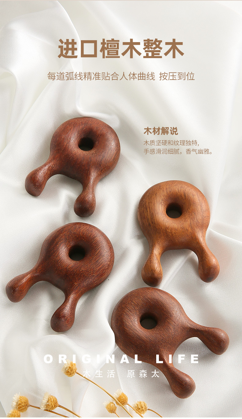 【进口檀木整切】原森太檀木按摩器眼部按摩脸面部刮痧按摩棒头部经络梳美鼻神器