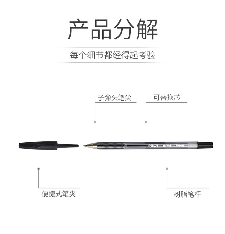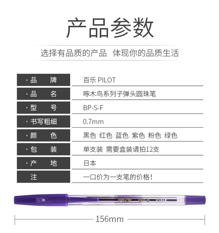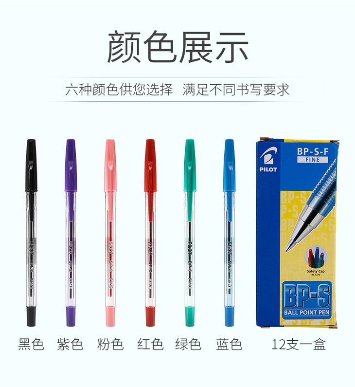 日本百乐(PILOT)BP-S彩色圆珠笔BP-SF 简易约办公笔老式经典款0.7mm