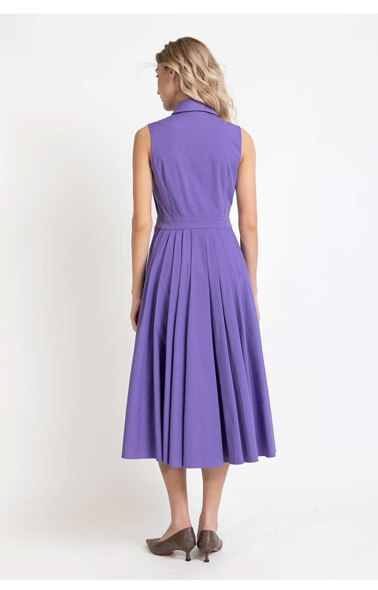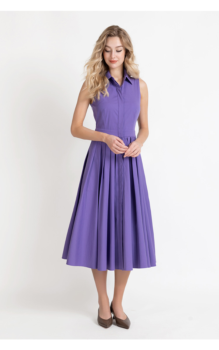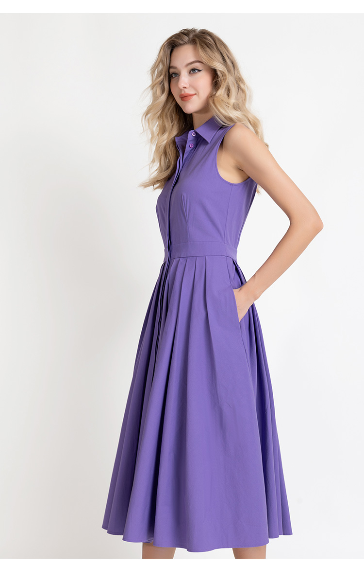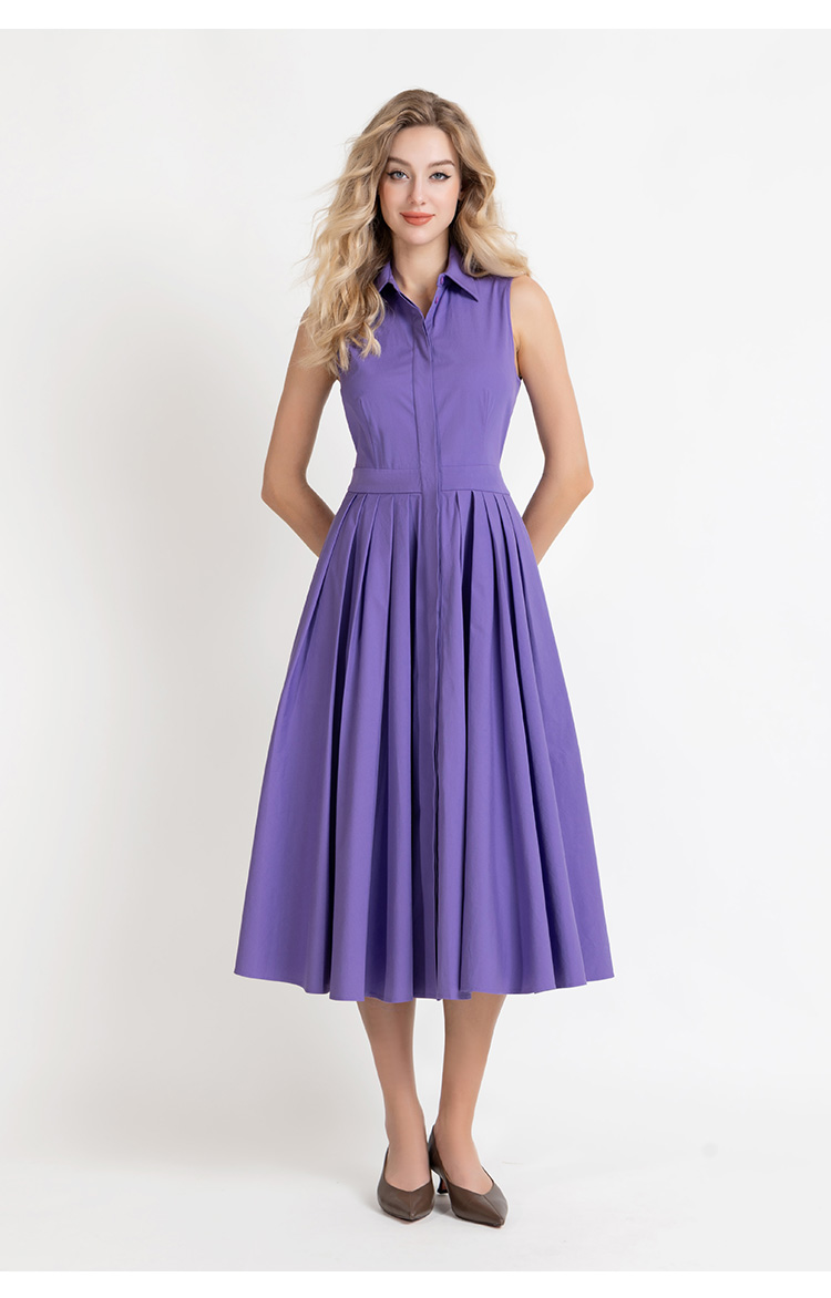 LIZZY 优雅赫本风衬衫领时尚洋气无袖大摆连衣裙7923