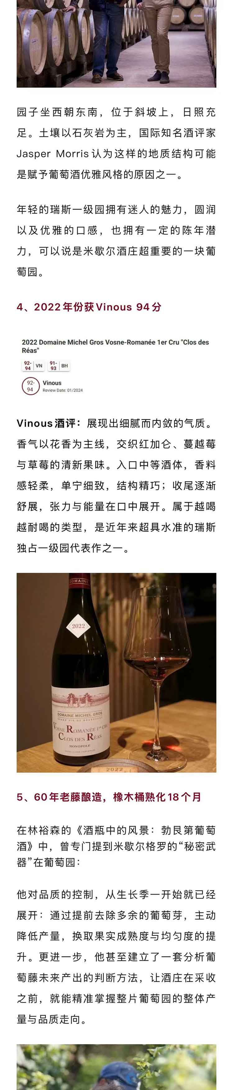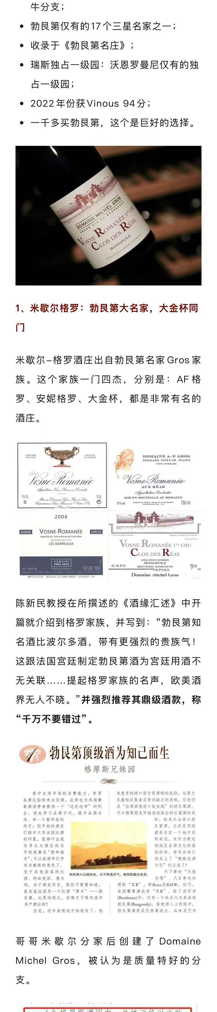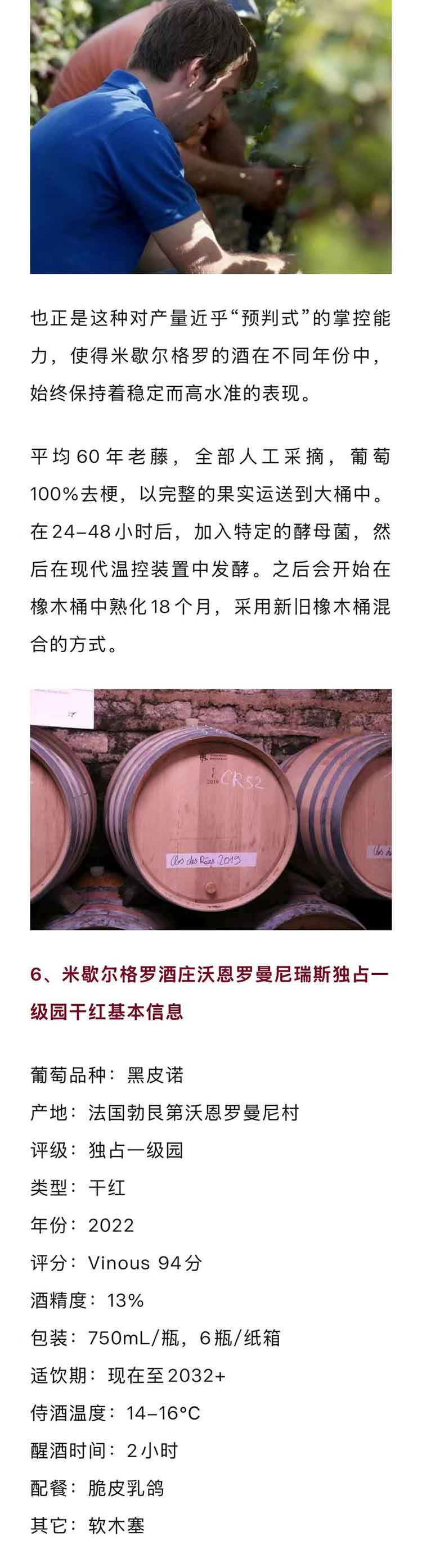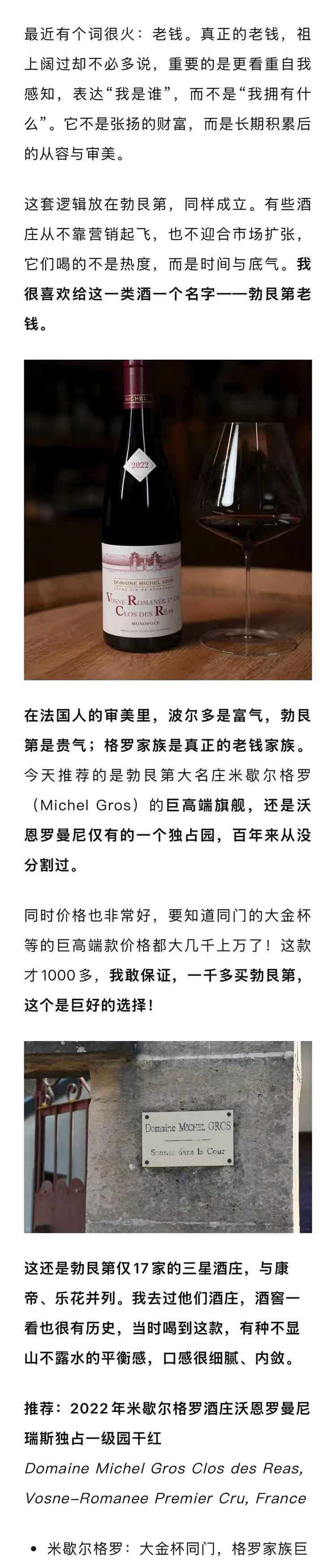 法国勃艮第2022年米歇尔格罗酒庄沃恩罗曼尼瑞斯独占一级园黑皮诺干红