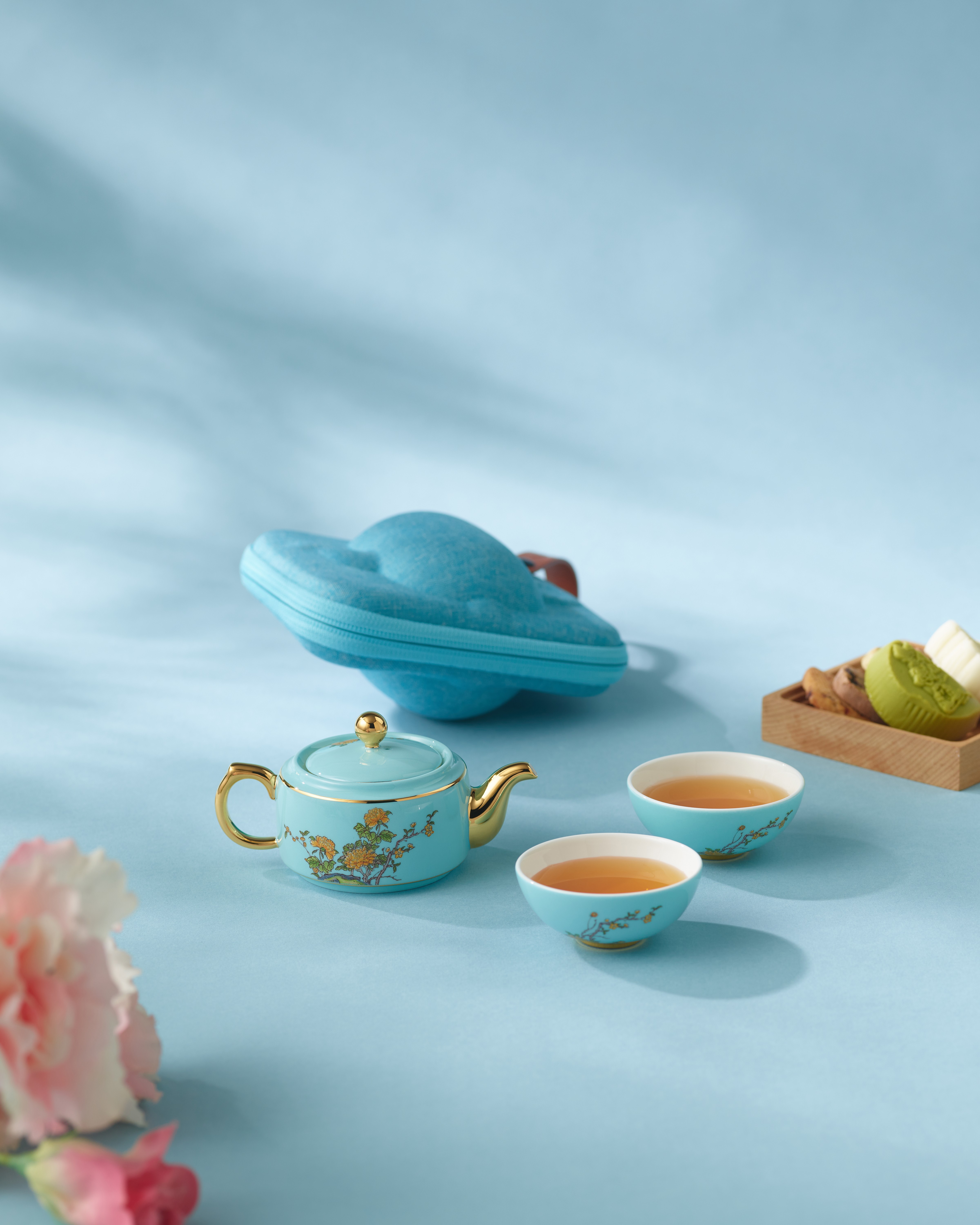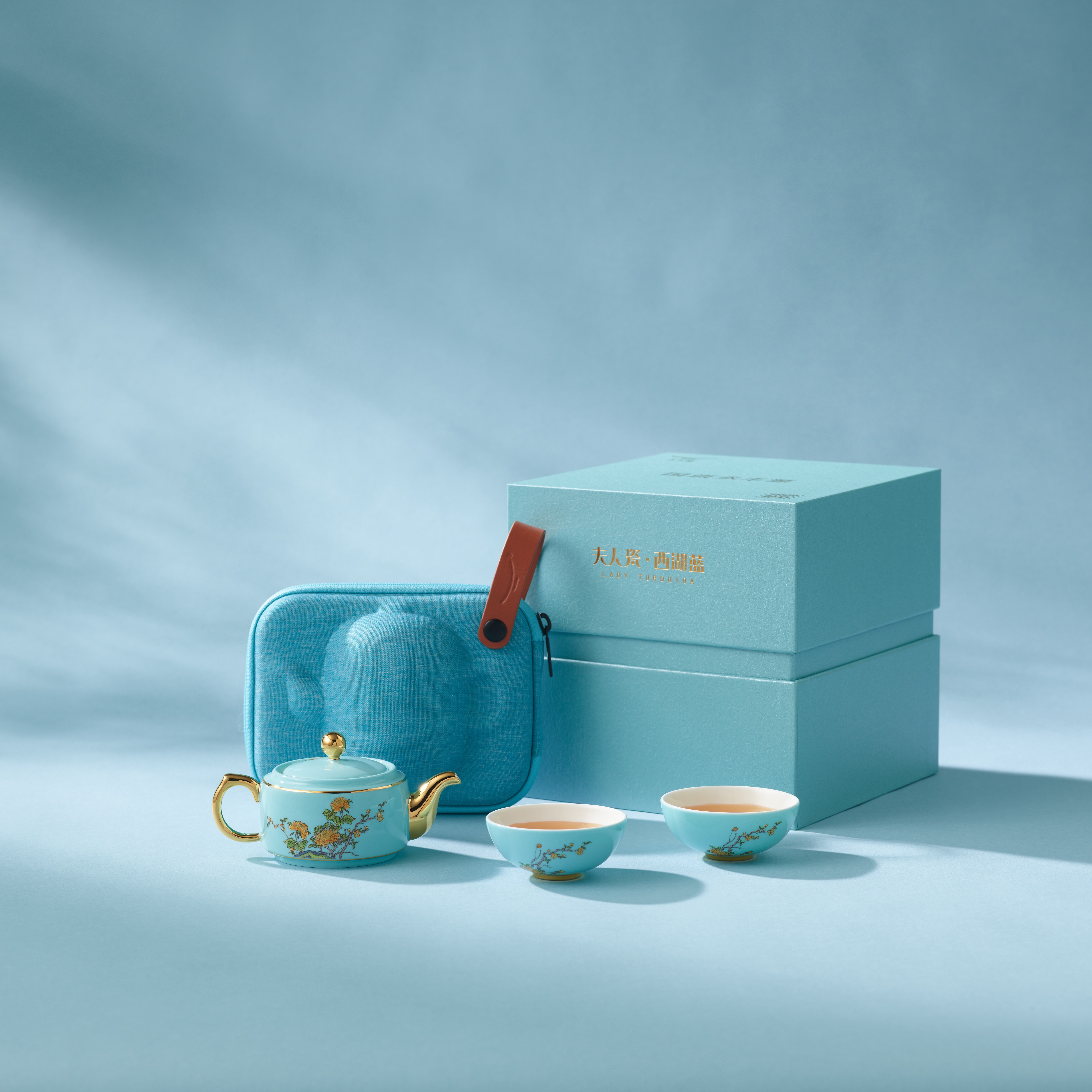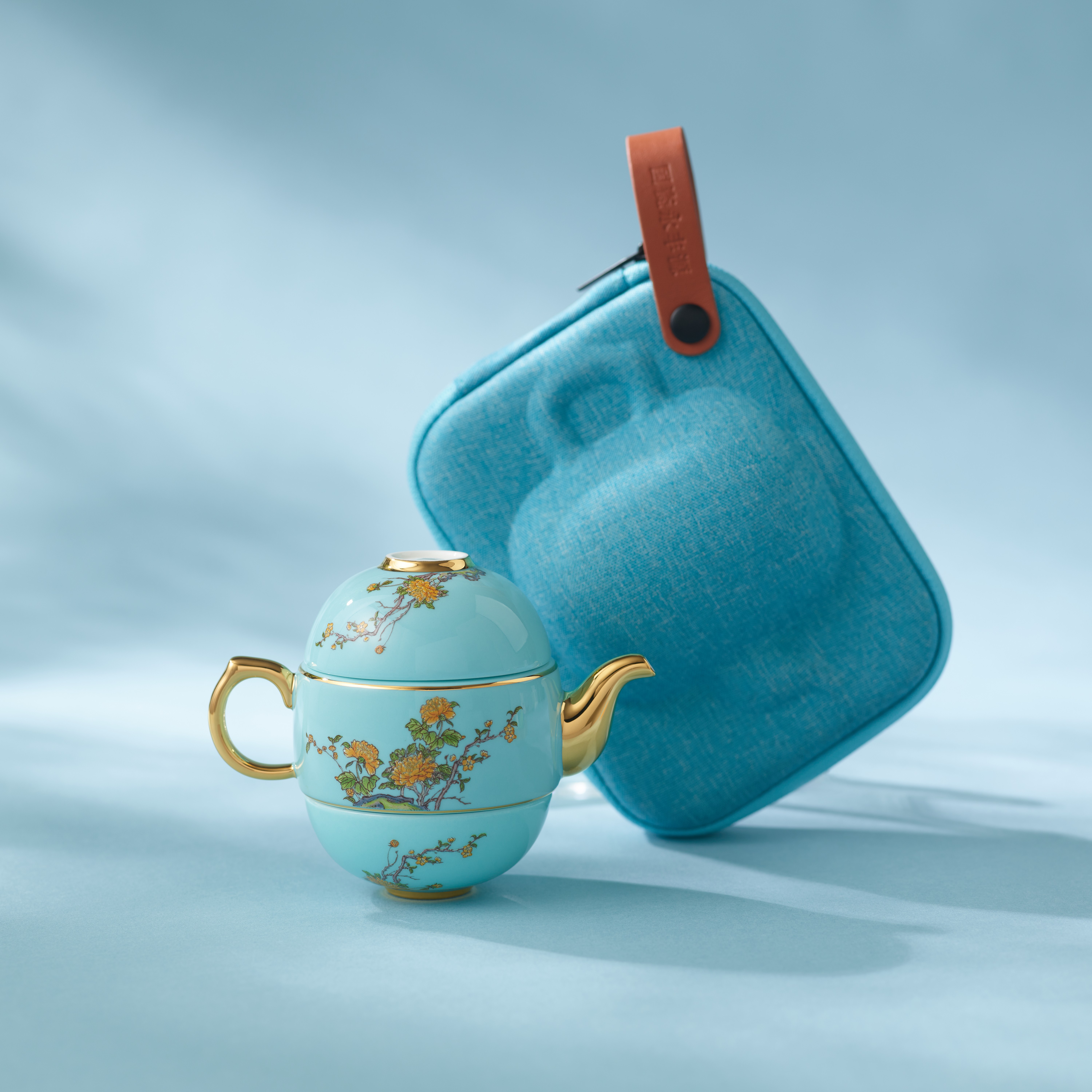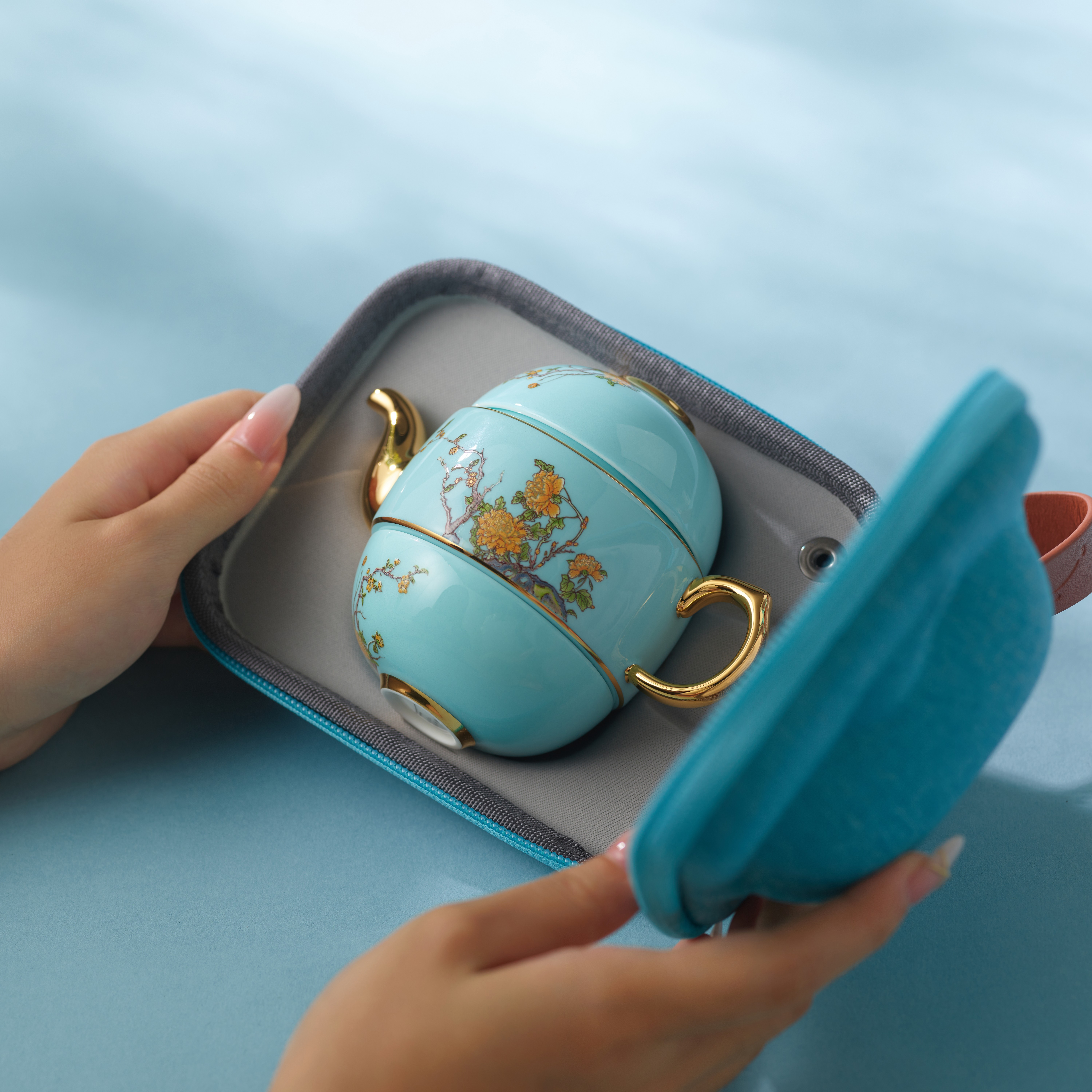 国瓷永丰源西湖蓝4头旅行茶具130ml YFY