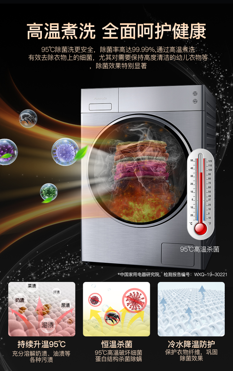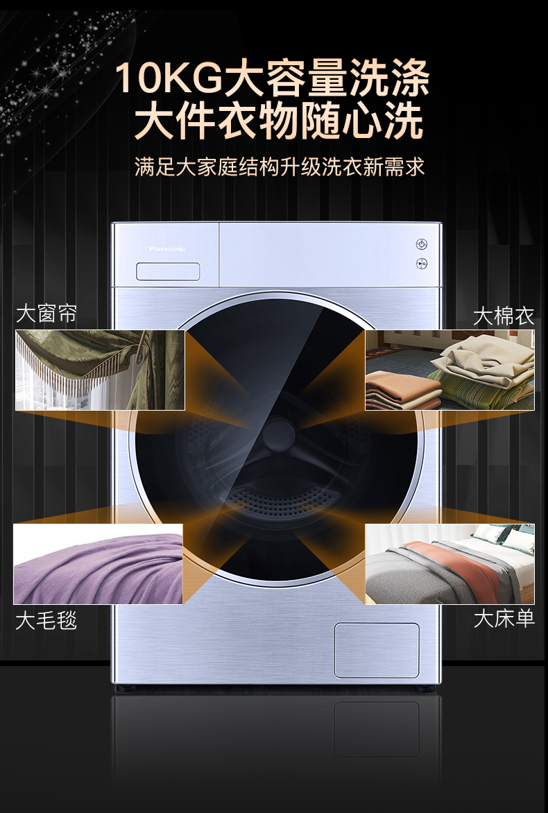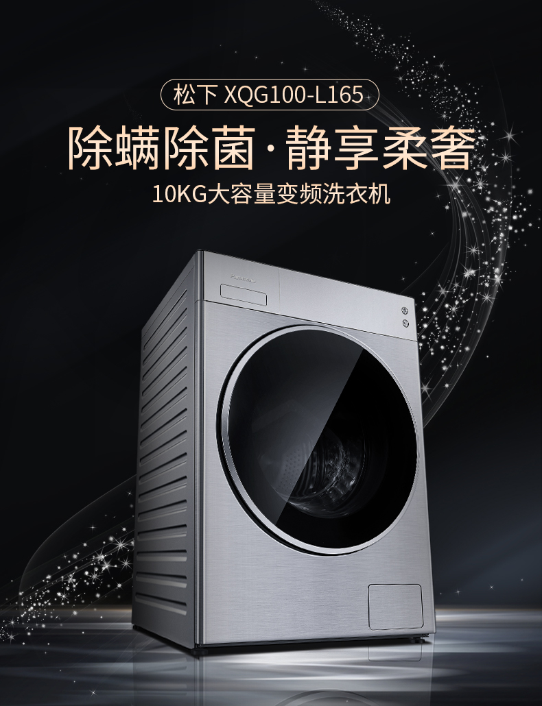 松下(Panasonic)XQG100-L165全自动滚筒洗衣机 10公斤 95度除菌 节能轻音 智能APP操控 24小时预约 免熨烫