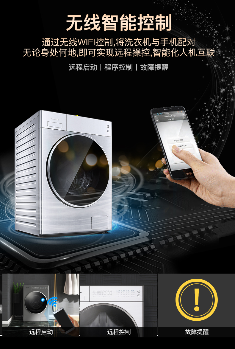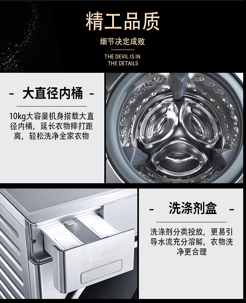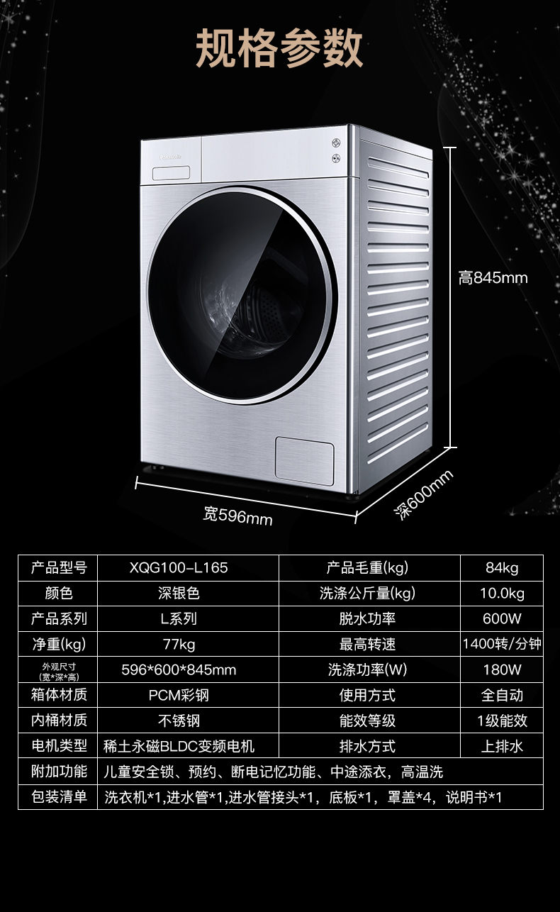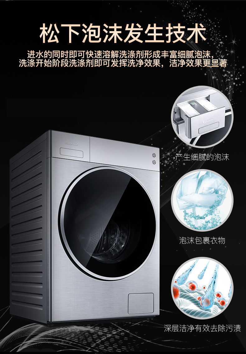 松下(Panasonic)XQG100-L165全自动滚筒洗衣机 10公斤 95度除菌 节能轻音 智能APP操控 24小时预约 免熨烫