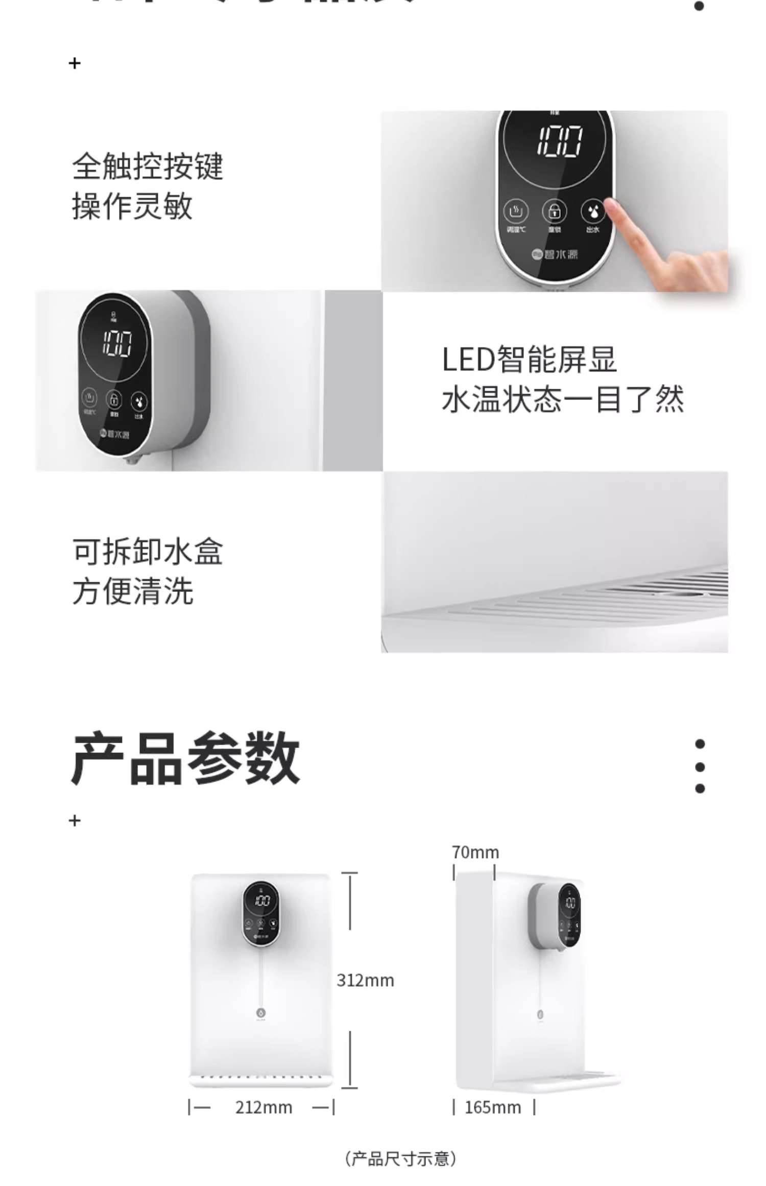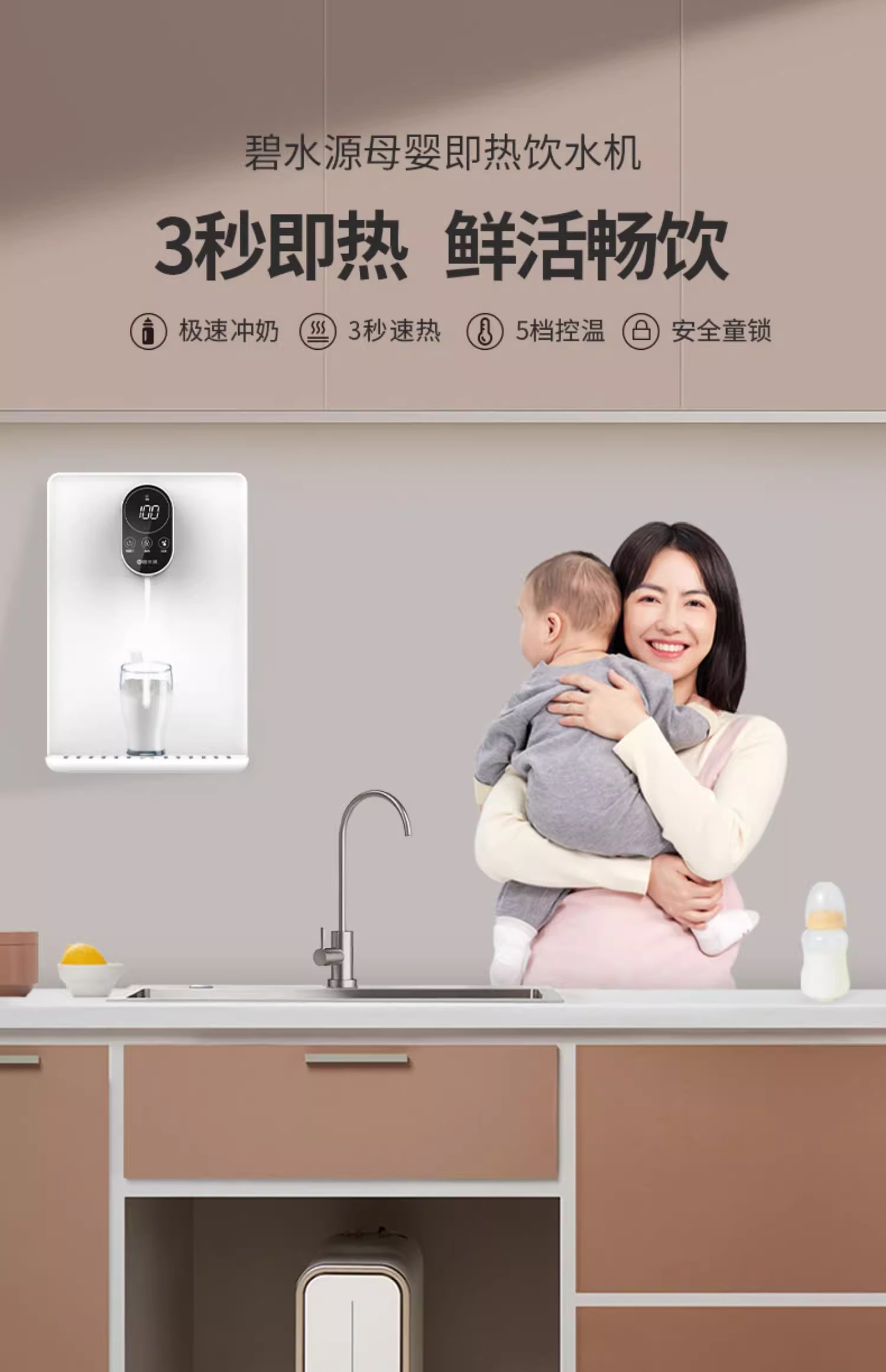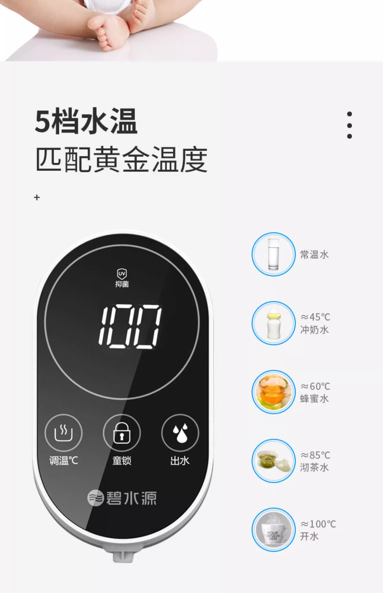 碧水源壁挂式管线机5档控温触控屏童锁母婴台式即热饮水机YR2230