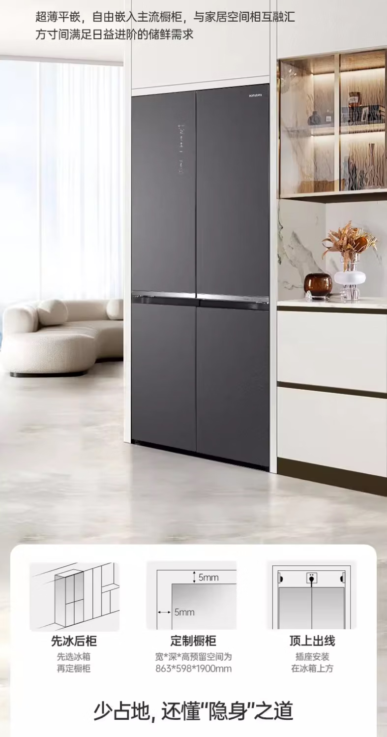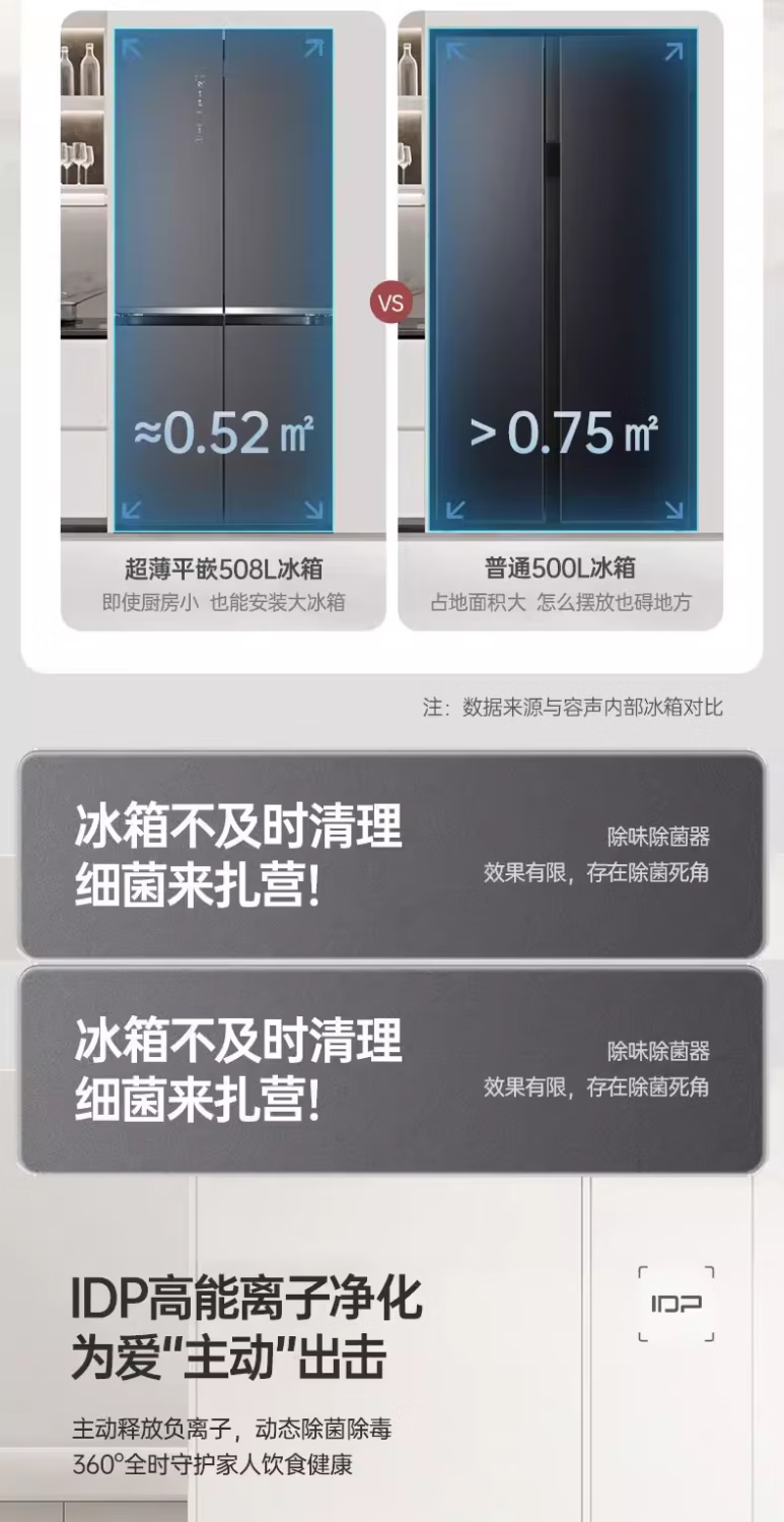 容声(Ronshen)双净平嵌系列508升十字对开四开门冰箱大容量一级能效变频风冷无霜除菌净味家用线下同款零嵌+IDP除菌 BCD-508WKK1FPCQA