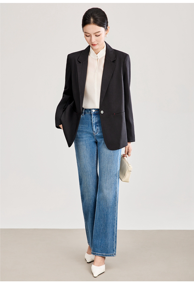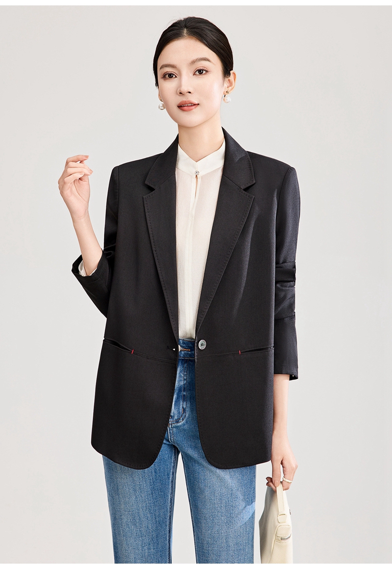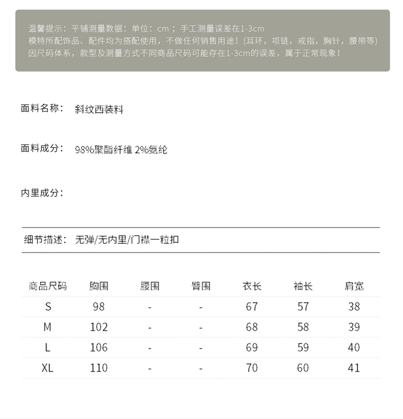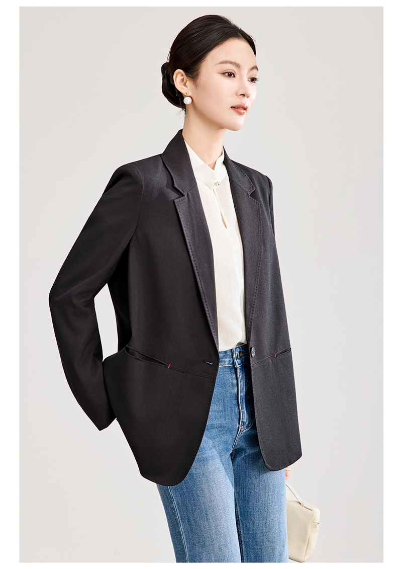 2026春装时尚翻驳长袖领一粒扣修身西装外套