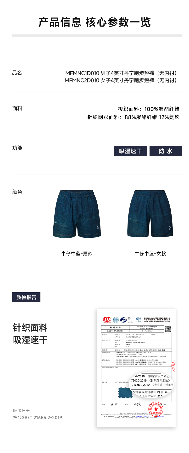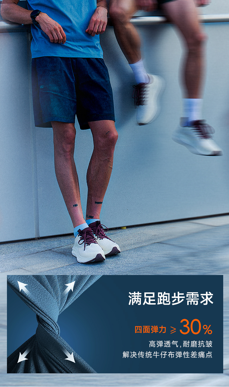 马孔多 | 跑步四英寸丹宁短裤男女四面弹力轻量无感速干短裤