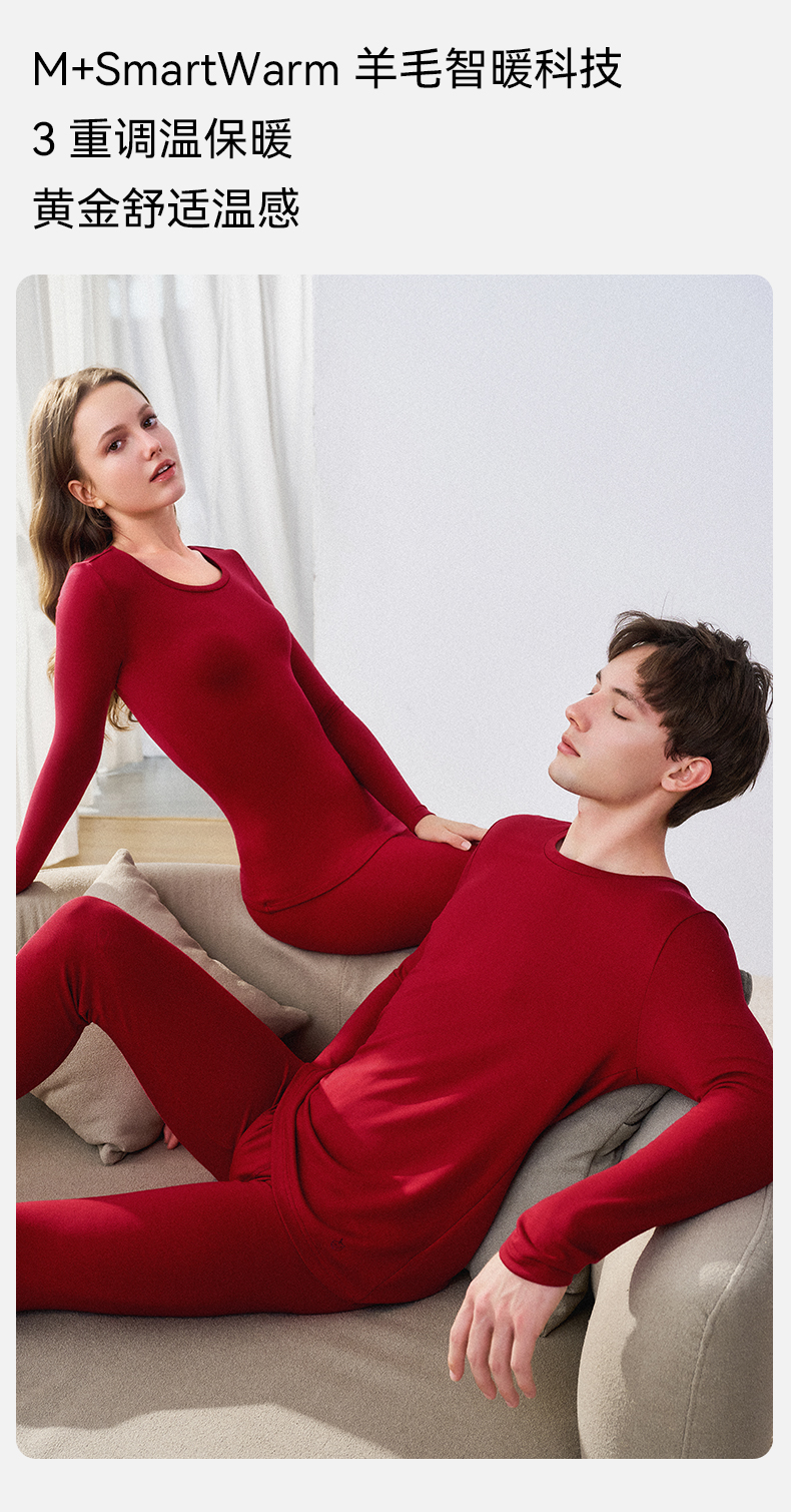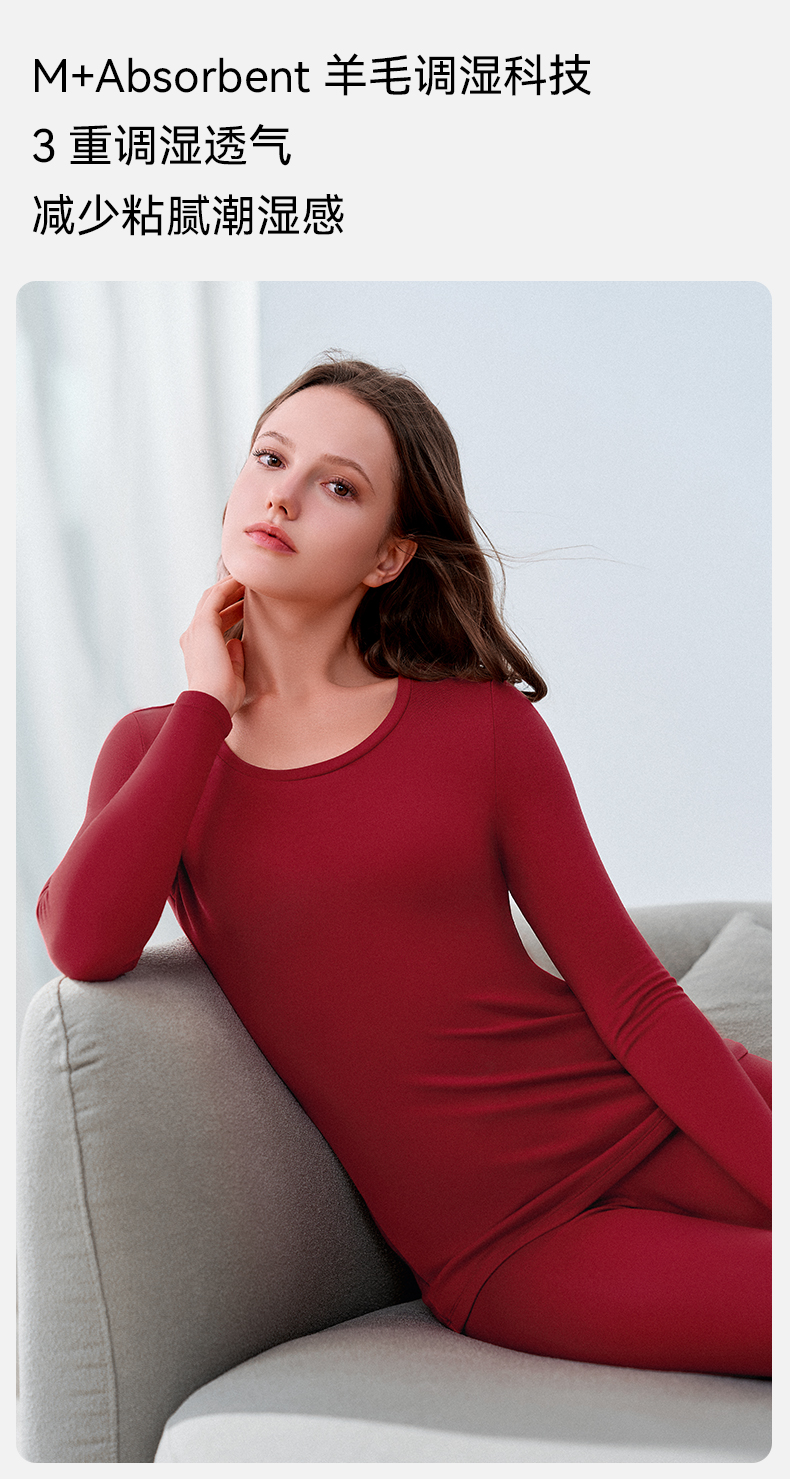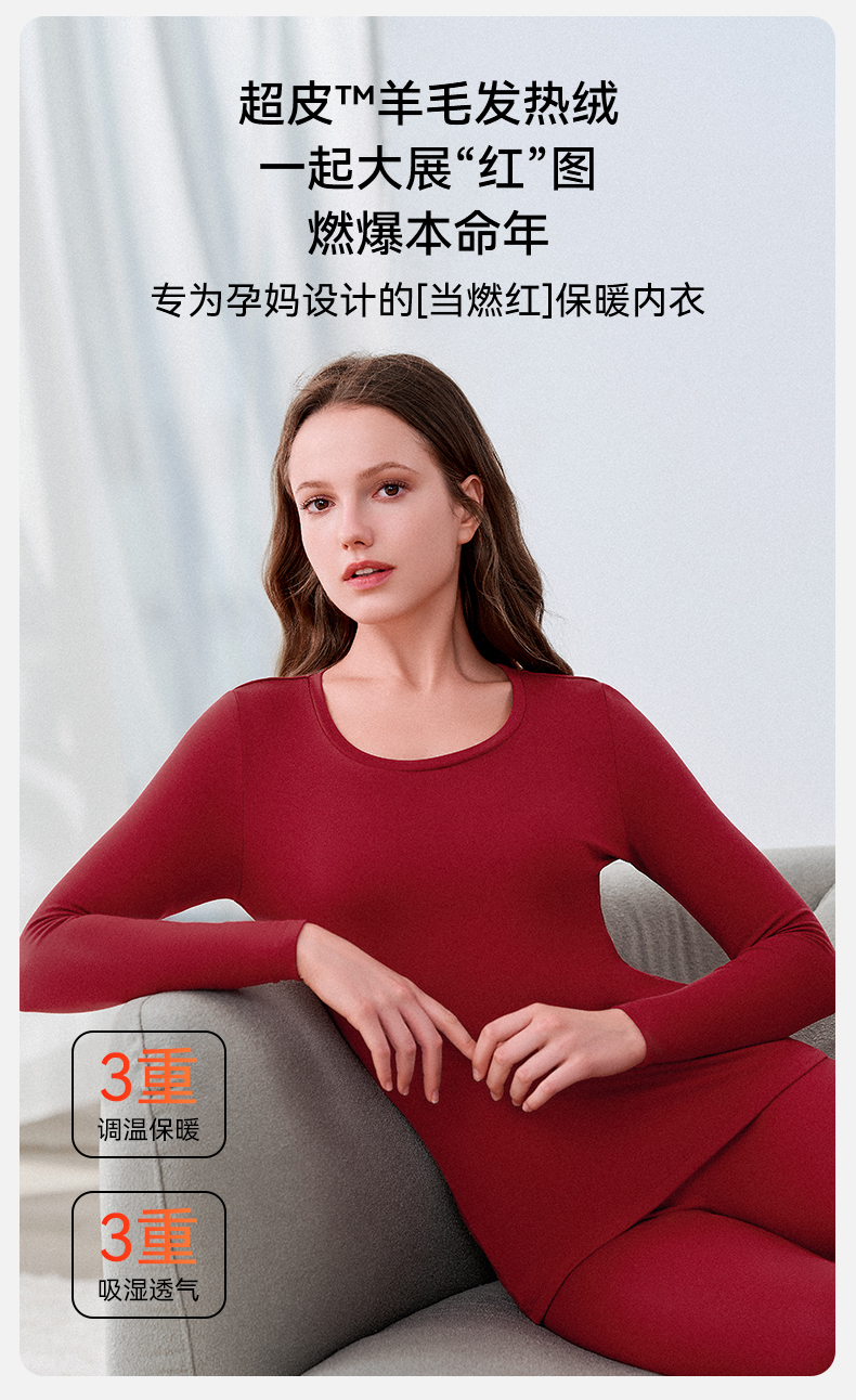 EMXEE嫚熙孕妇秋衣秋裤套装本命年羊毛月子服哺乳保暖内衣