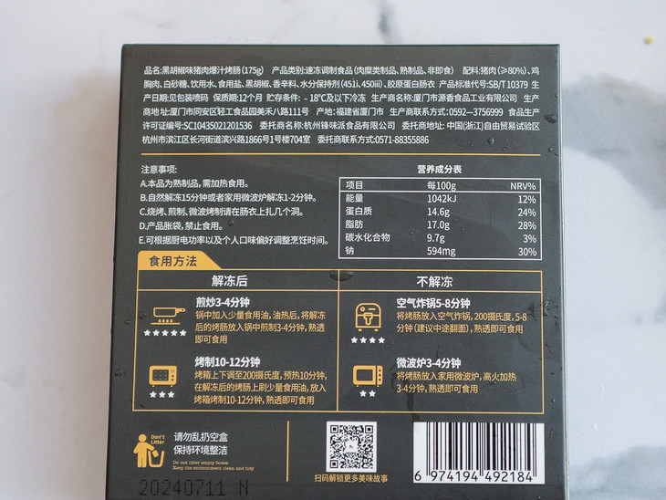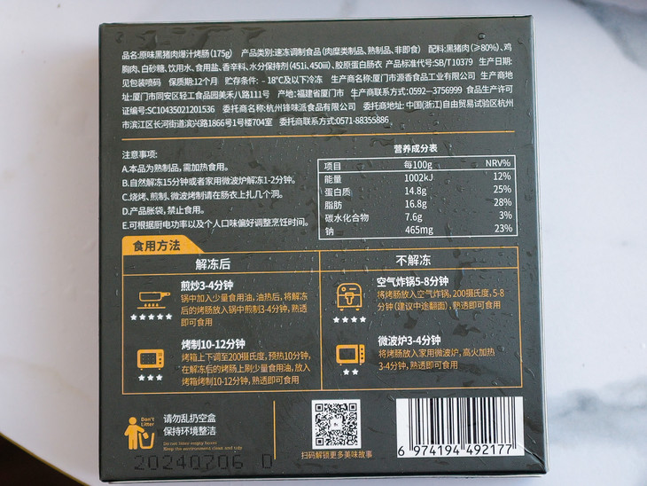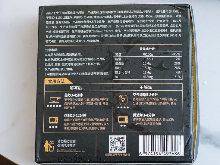 【产品名称】锋味派火山石烤肠