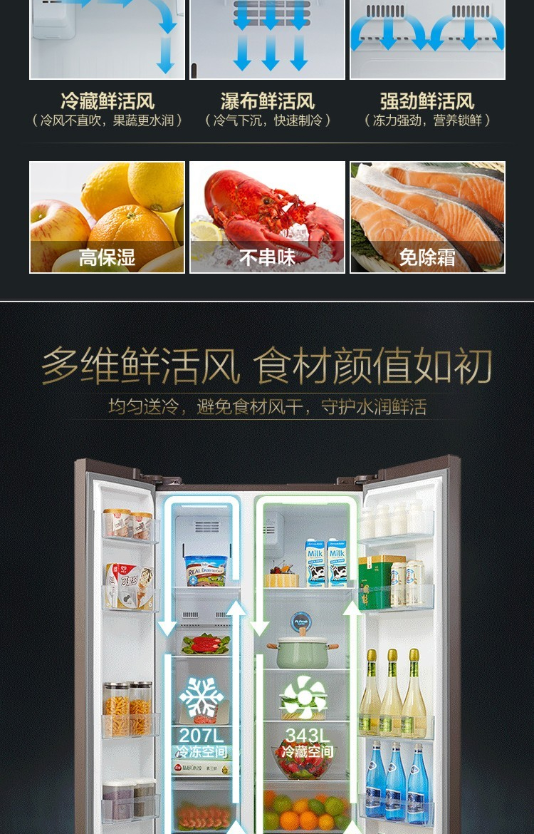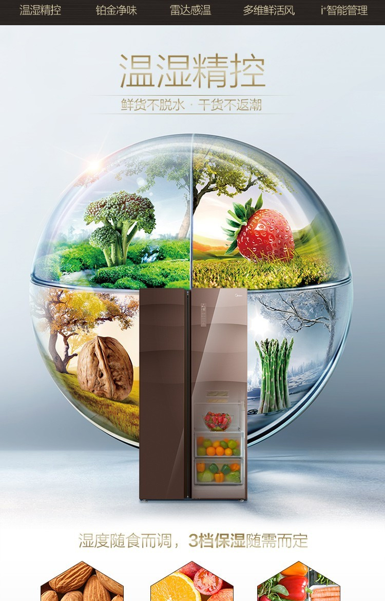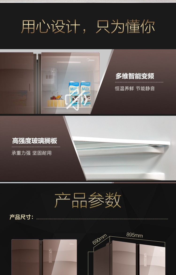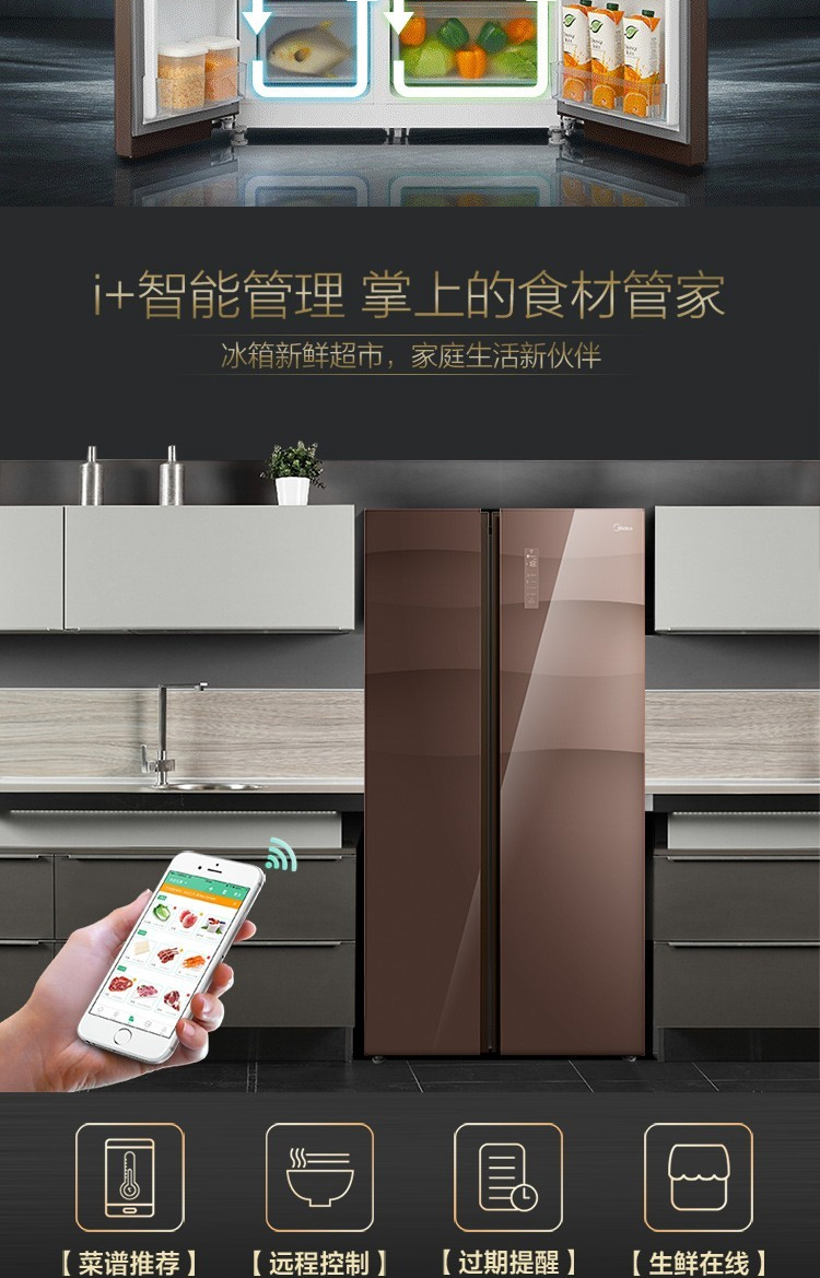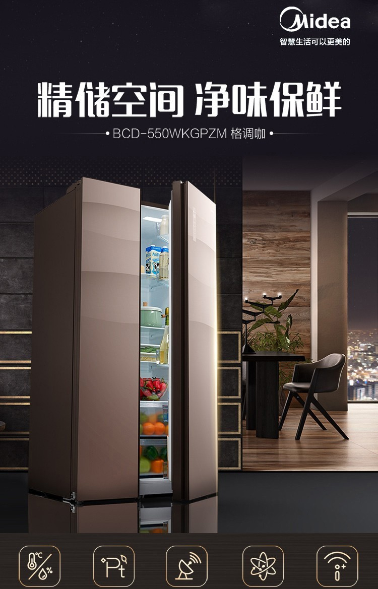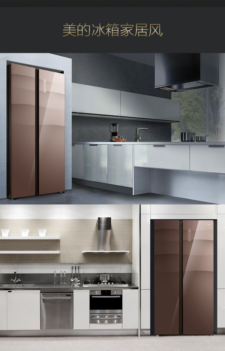 美的(Midea)550升 家用双变频风冷对开门冰箱玻璃面板多维智能 家电BCD-550WKGPZM