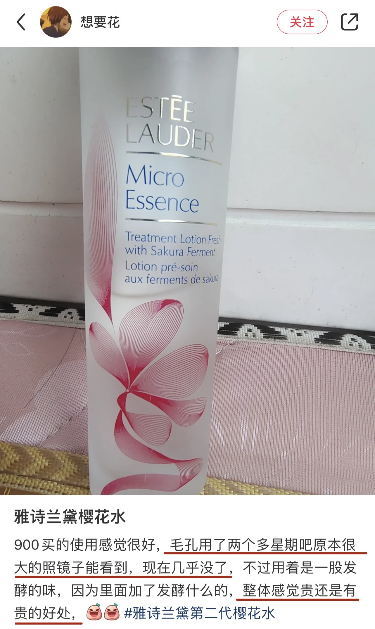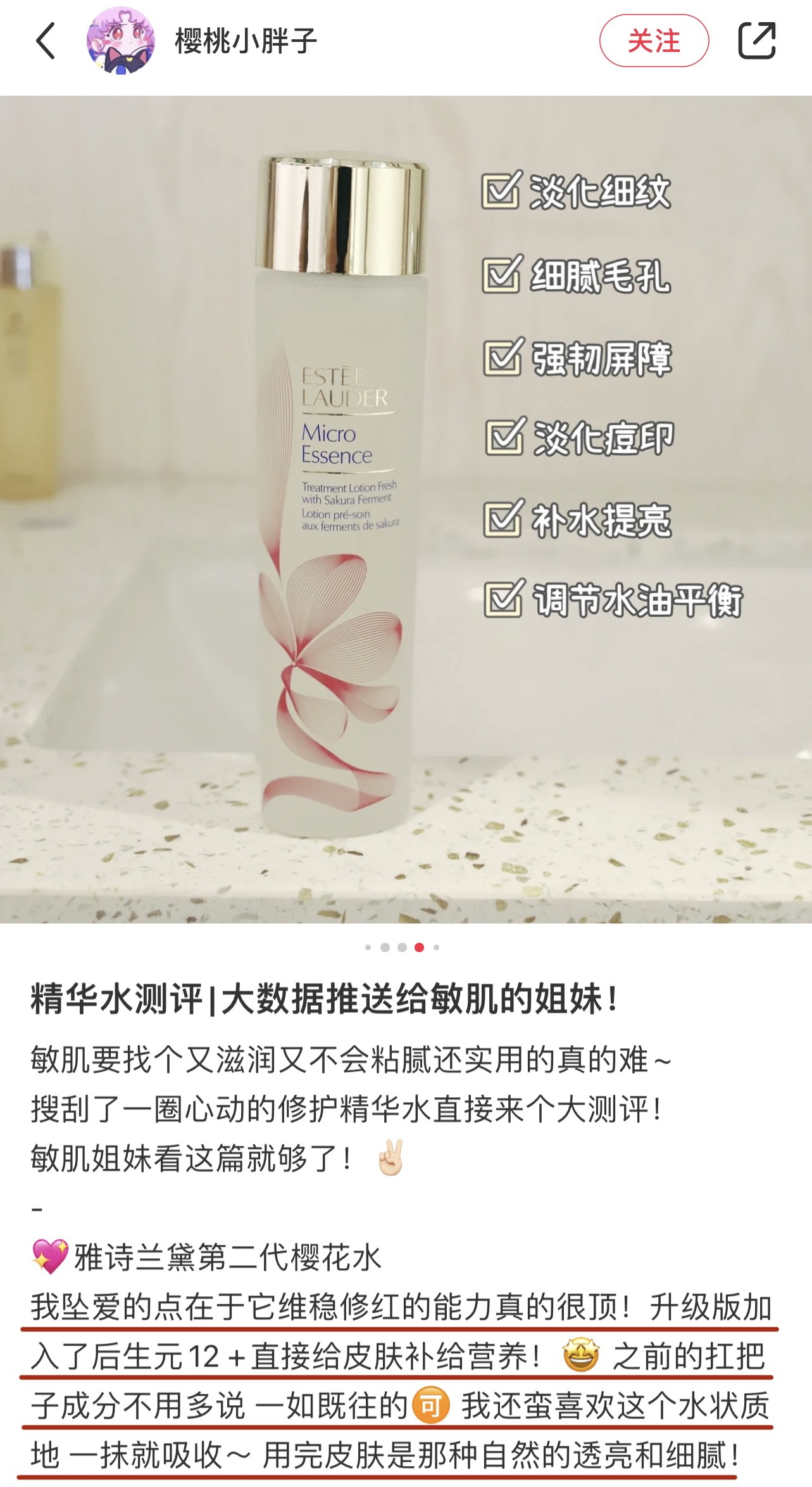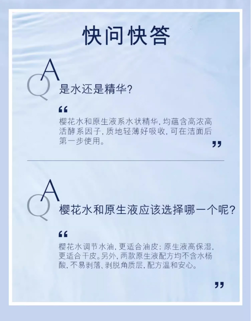第一代樱花水主打的功效是细腻光滑肤质、平衡水油,