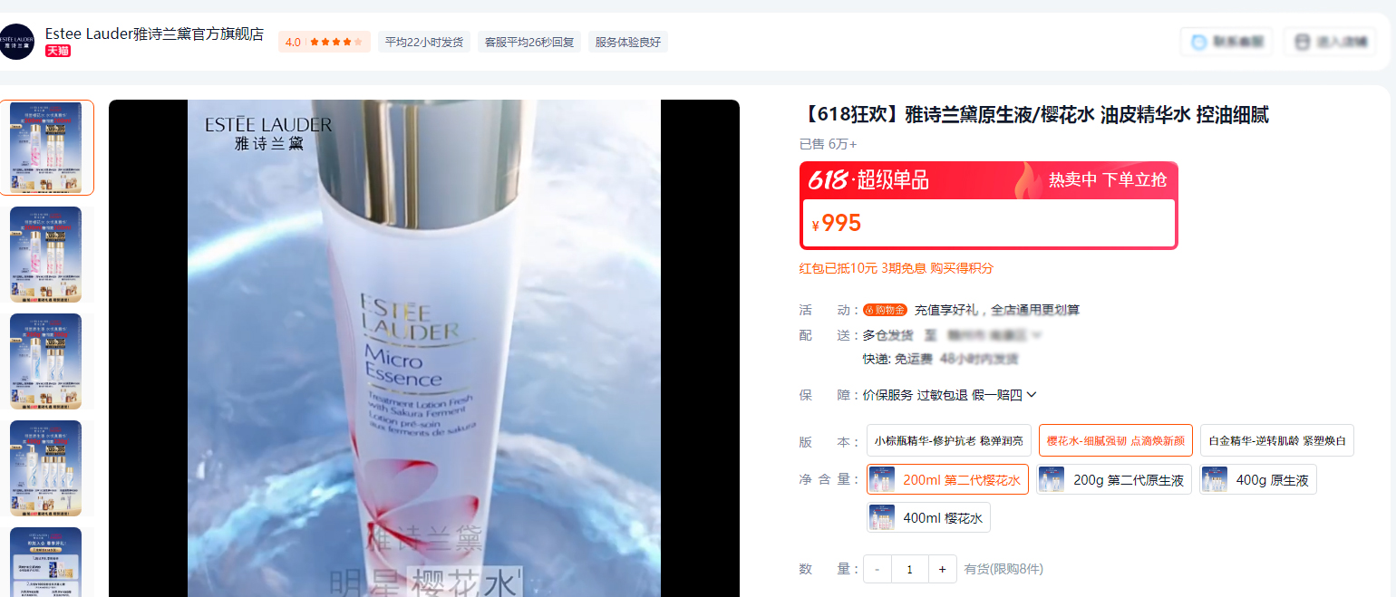 雅诗兰黛「肌初赋活原生液」樱花版再次推陈出新!