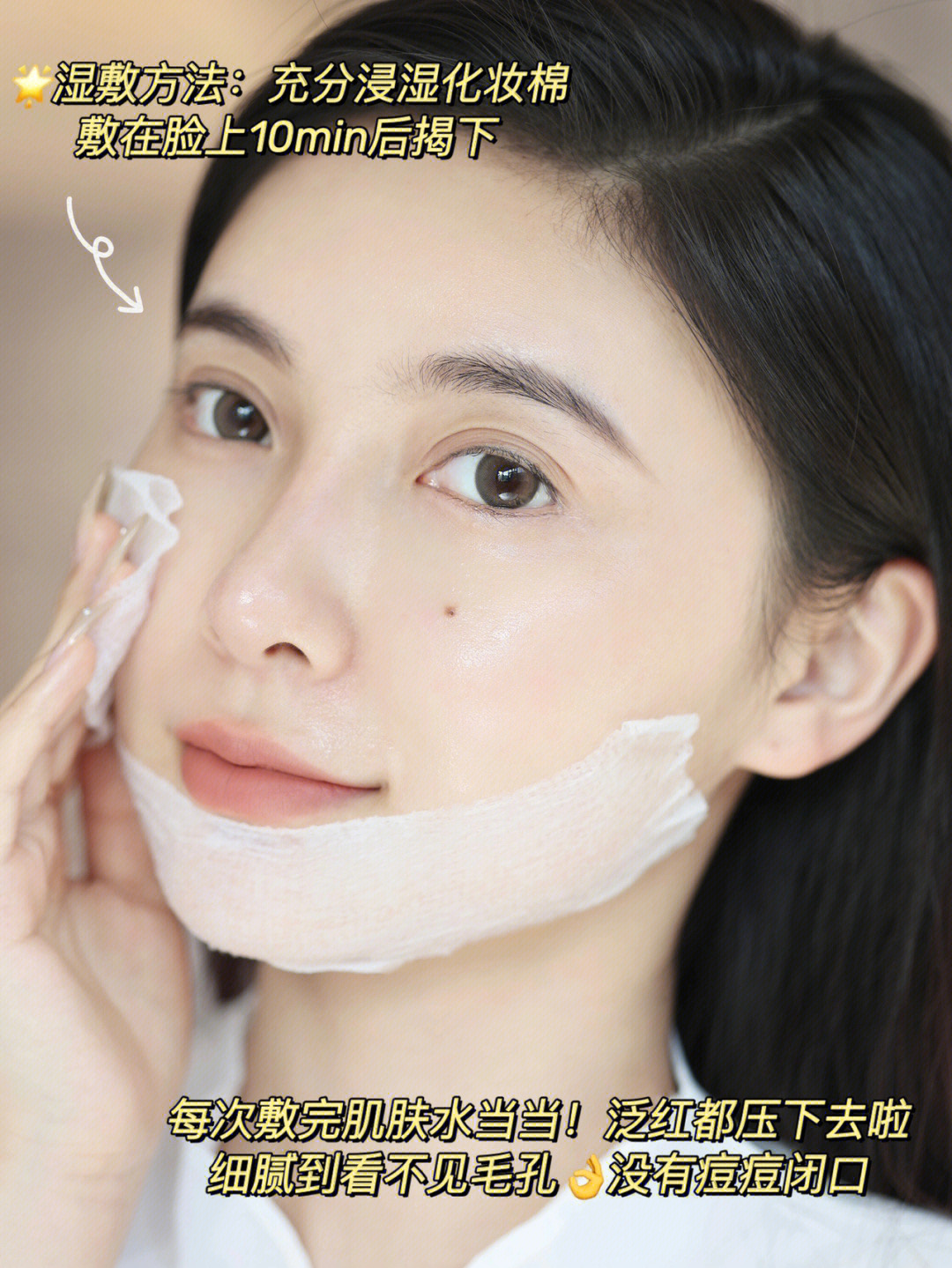 ●湿敷:温柔地用浸满原生液的化妆棉扫敷在脸上,静待5—10分钟后揭下再进行正常护肤步骤即可。