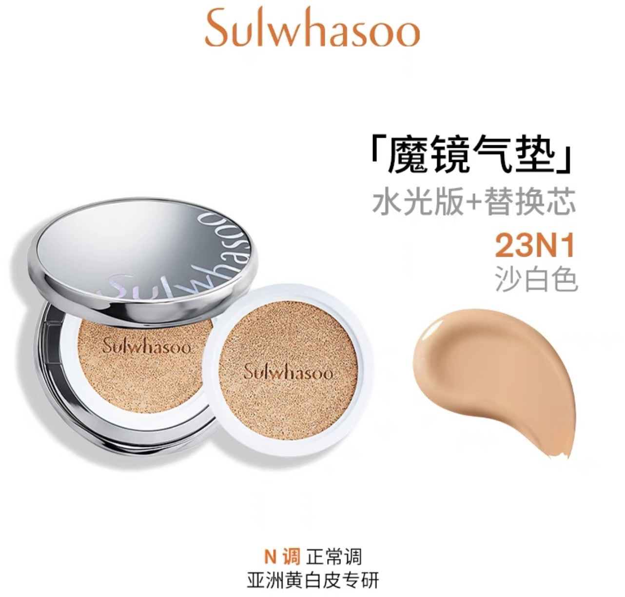 【品名】雪花秀致美水光养肤气垫(正装+替换芯)#23n1