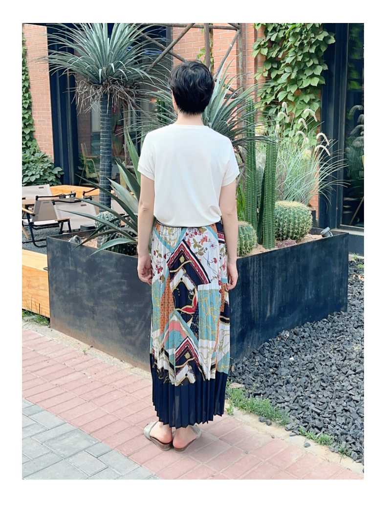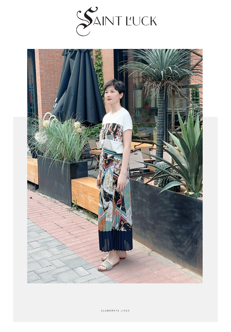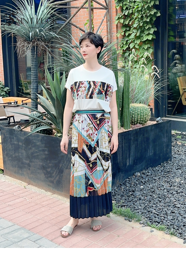 SAINT L’UCK/圣媛女装 时尚优雅多彩印花百褶半身裙SA220B23