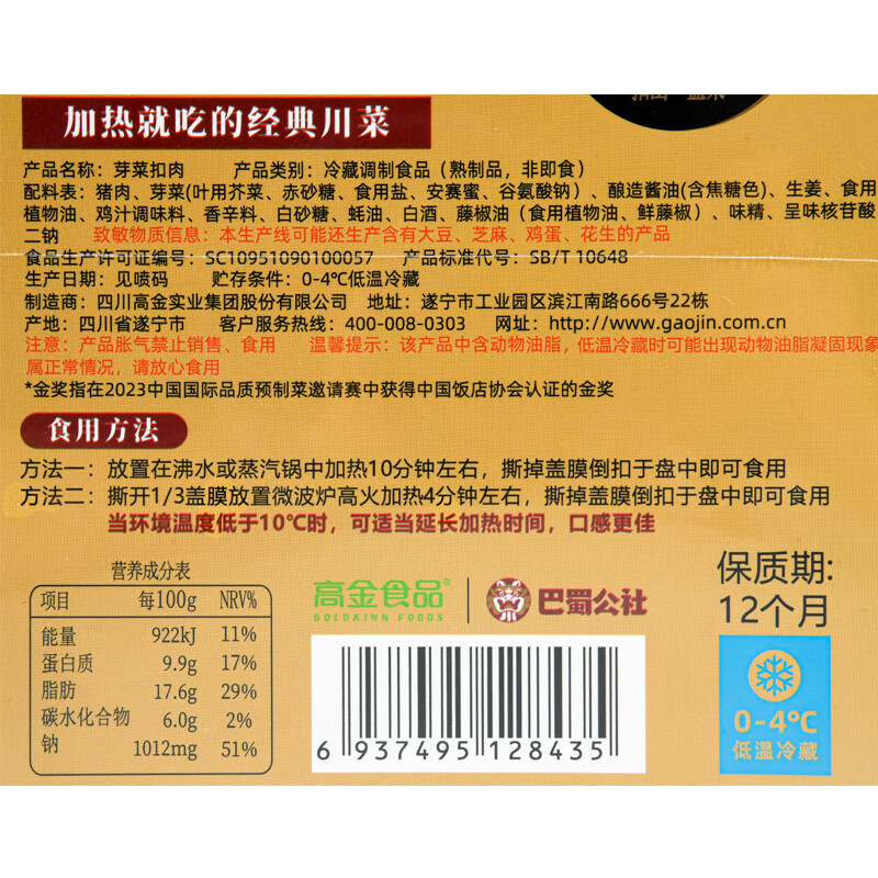 巴蜀公社 芽菜扣肉 350g/盒